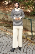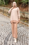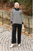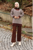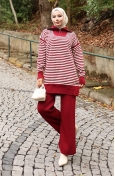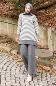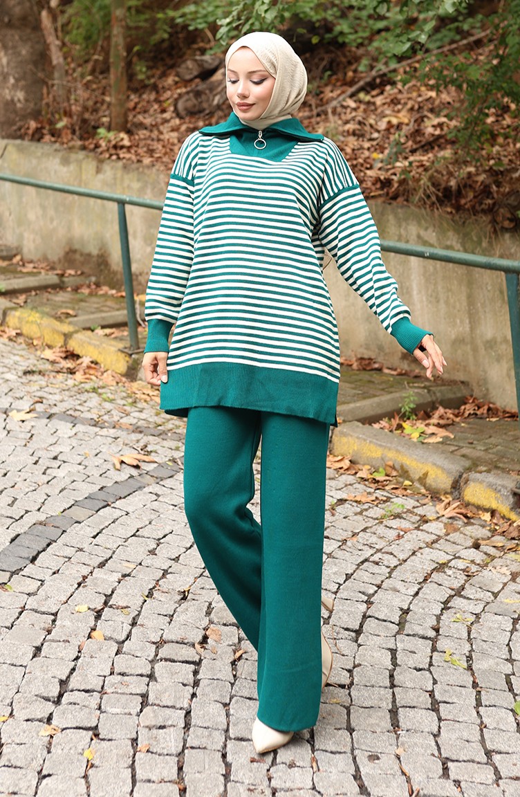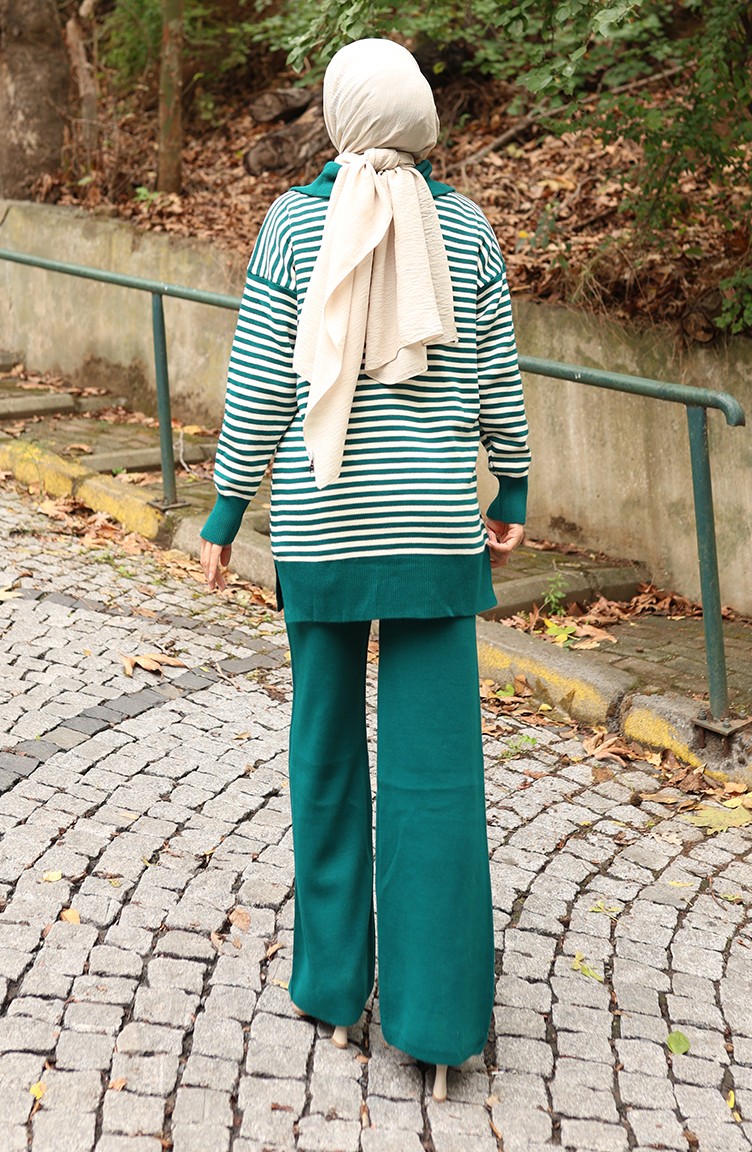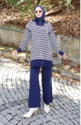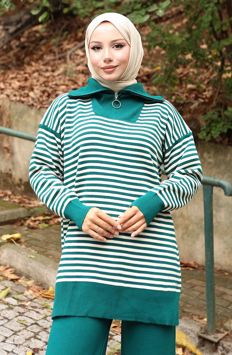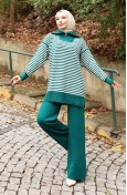 Triko Balıkçı Yaka Çizgili Tunik Pantolon İkili Takım 1098-07 Petrol