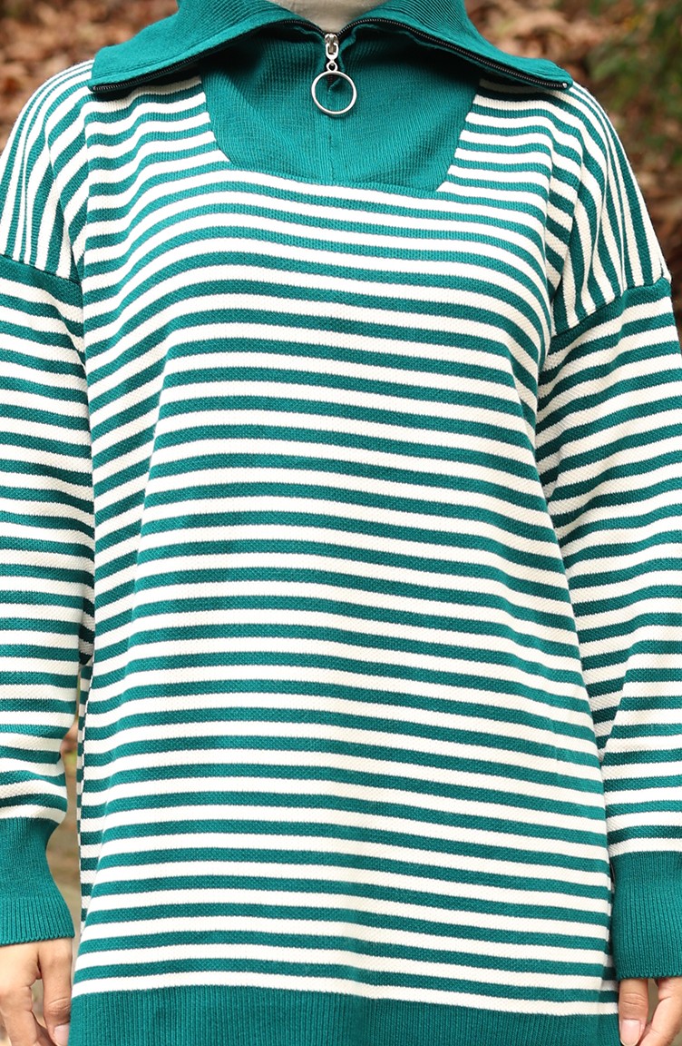 Petrol renktedir. Akrilik kumaş. Çizgilidir. Tunik. Balıkçı yaka detayı ile kullanışlı modeldir. Kışlık. 36-42 Beden aralığındadır.