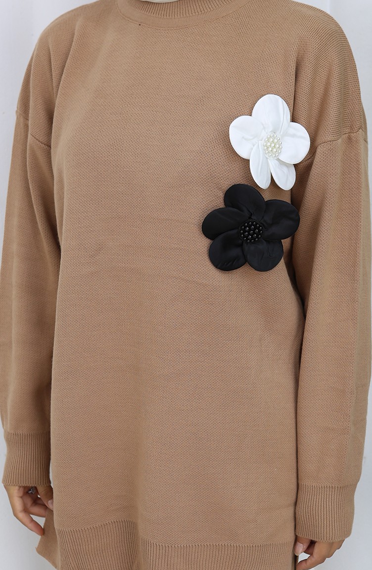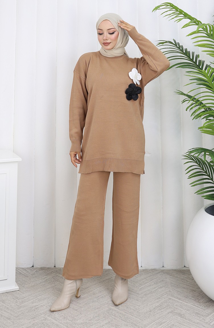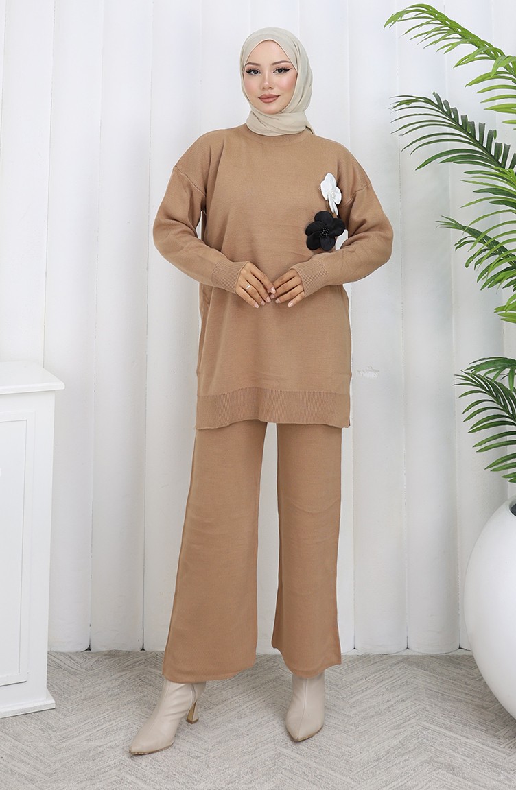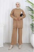 Triko Balıkçı Yaka Tunik Pantolon İkili Takım 1015-07 Sütlü kahve
