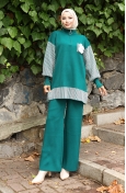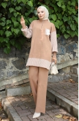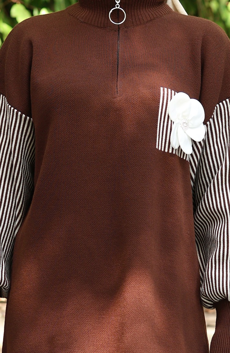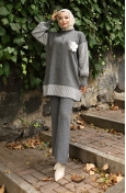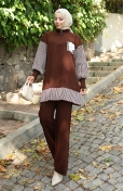 Triko Çiçek Aplikeli Tunik Pantolon İkili Takım 1009-03 Kahverengi