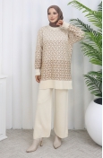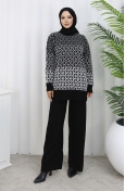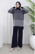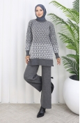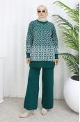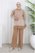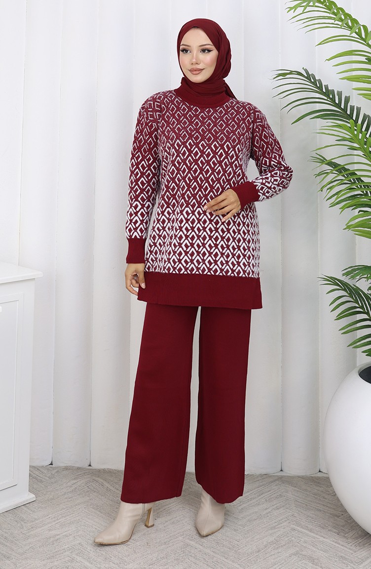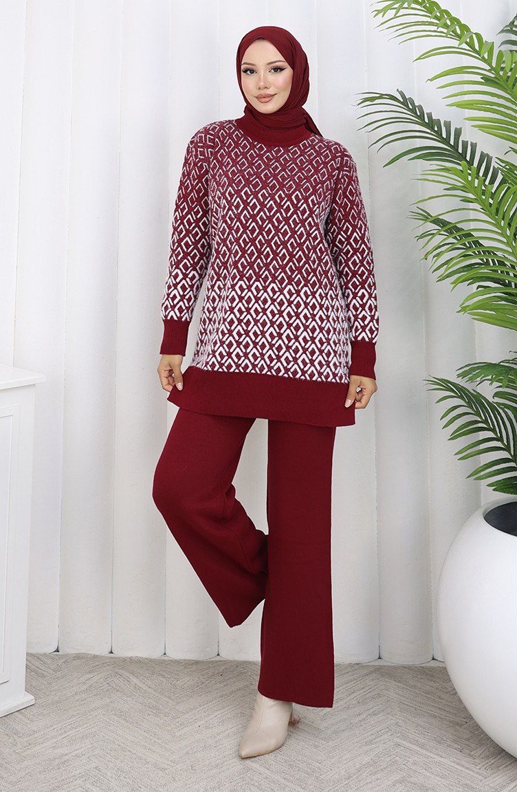 Triko Desenli Tunik Pantolon İkili Takım 1085-03 Bordo