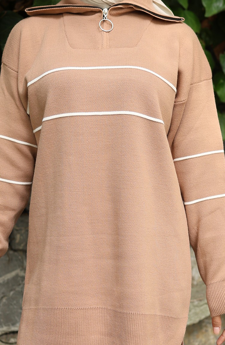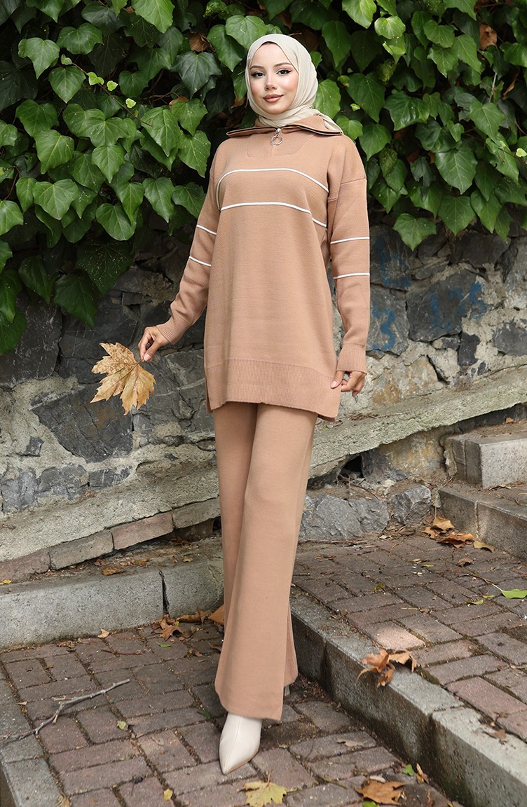 Triko Fermuarlı Tunik Pantolon İkili Takım 1050-02 Sütlü kahve