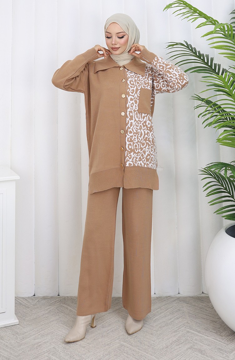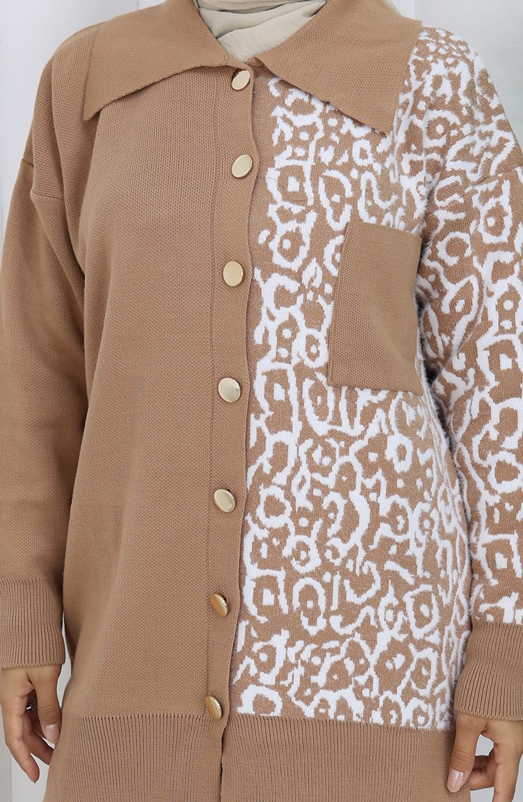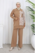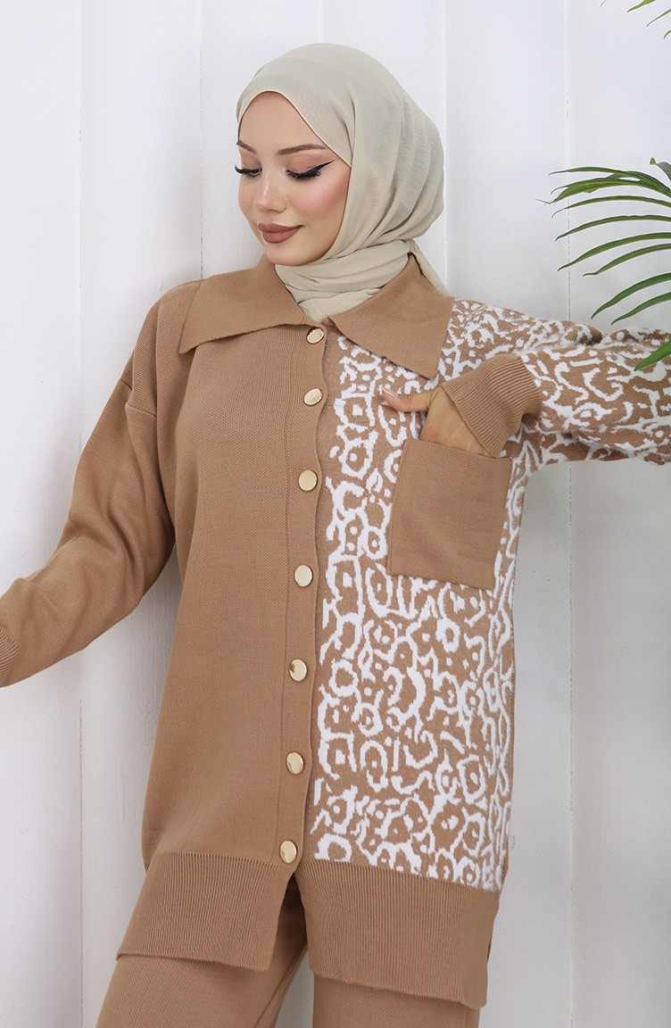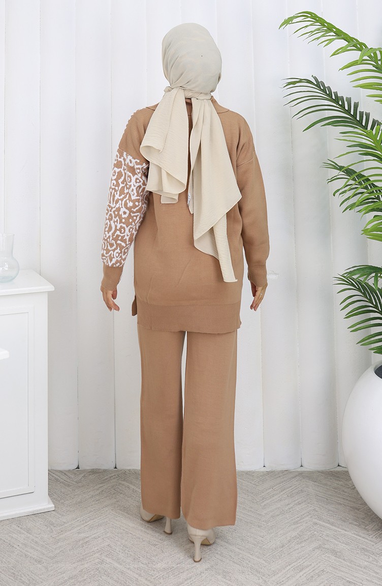 Triko Garnili Düğmeli Tunik Pantolon İkili Takım 1078-02 Sütlü kahve