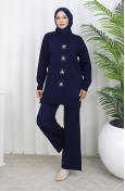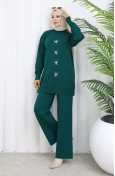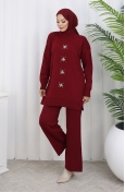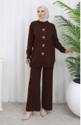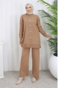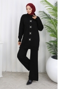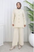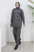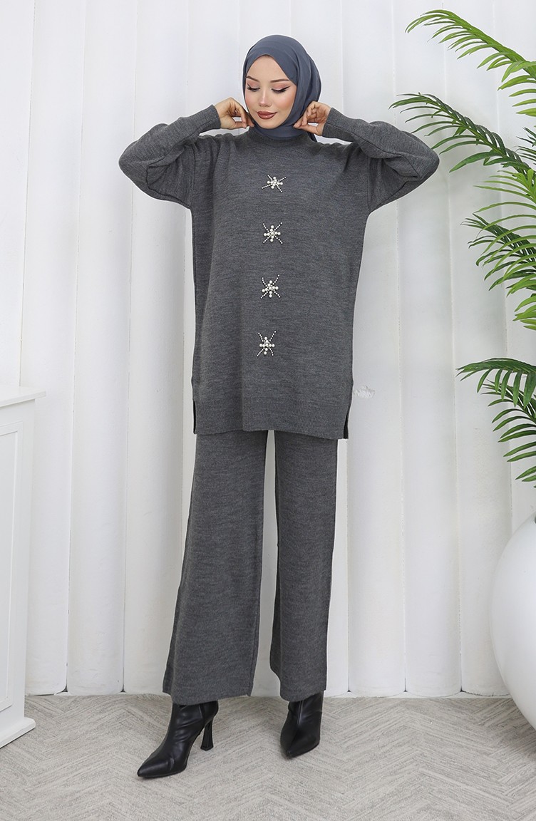 Triko İnci İşlemeli Tunik Pantolon İkili Takım 1068-04 Gri