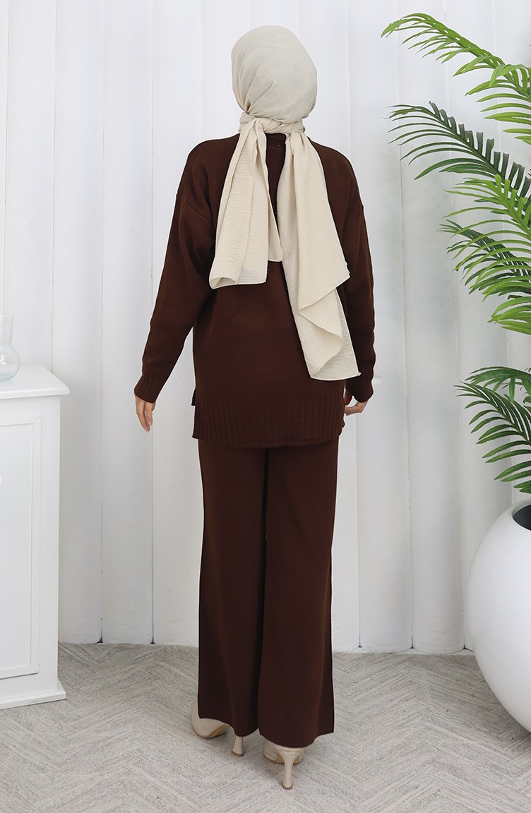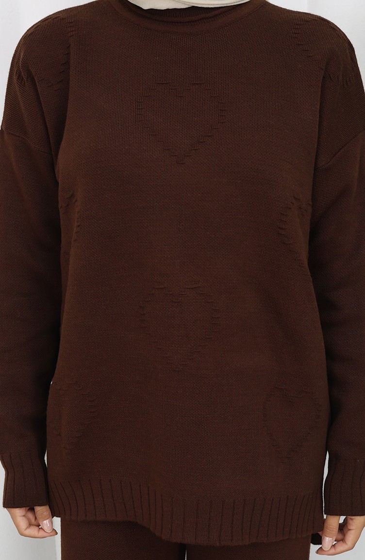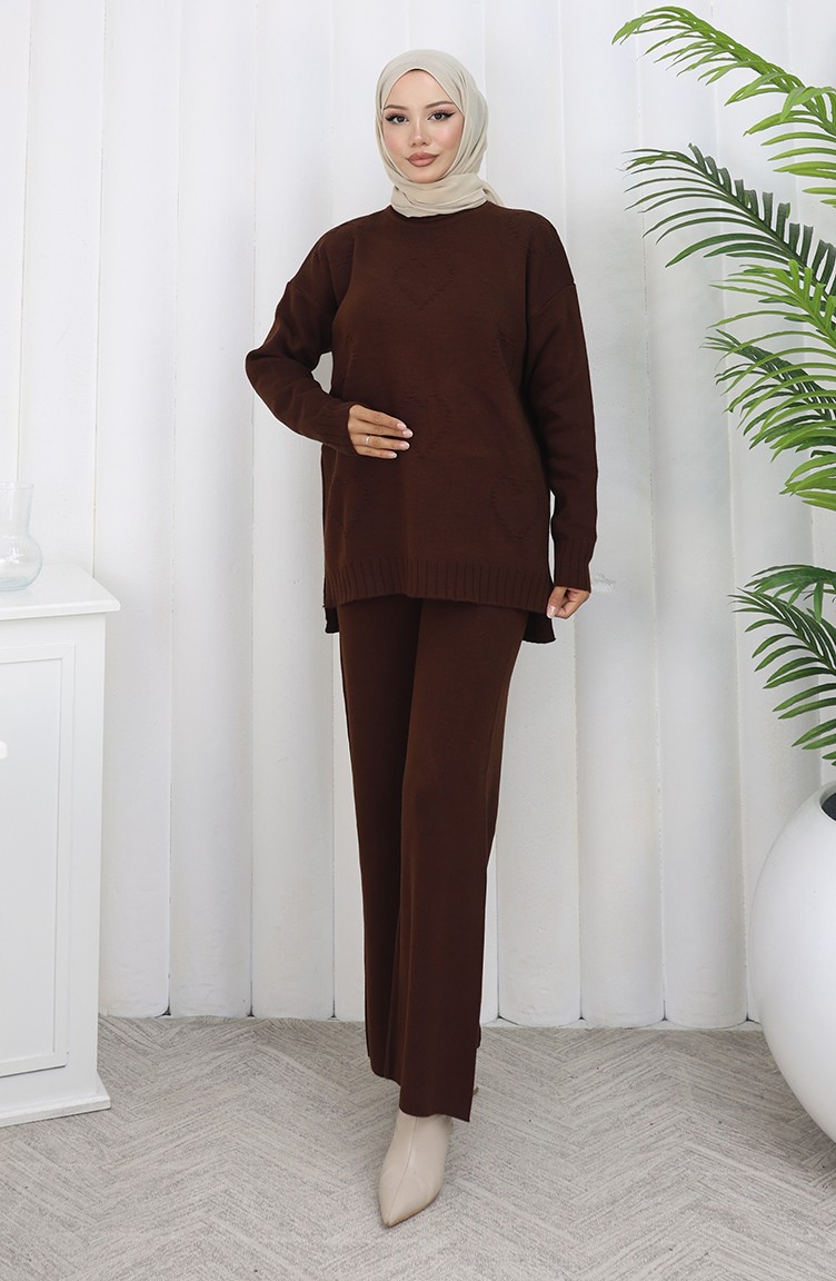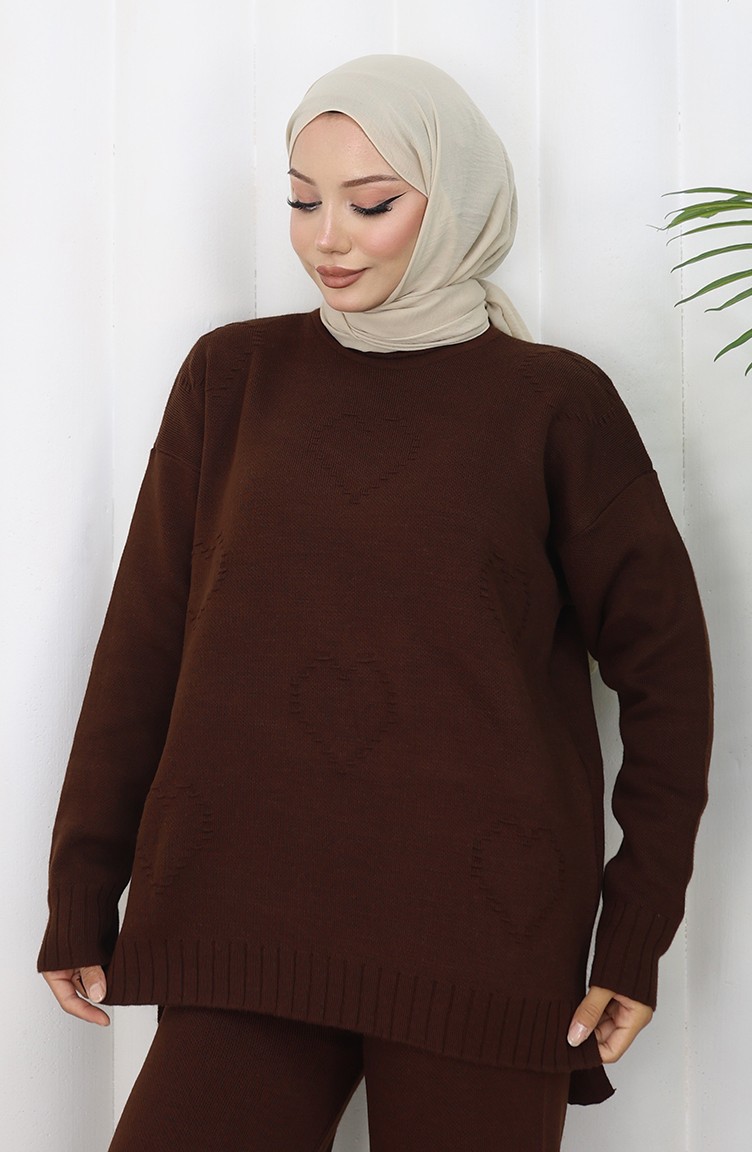 Triko Kalp Desenli Kazak Pantolon İkili Takım 0016-05 Kahverengi