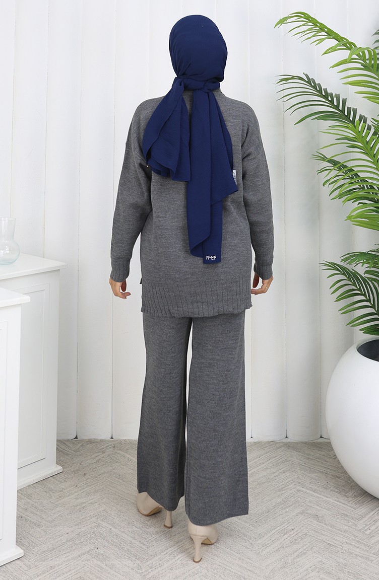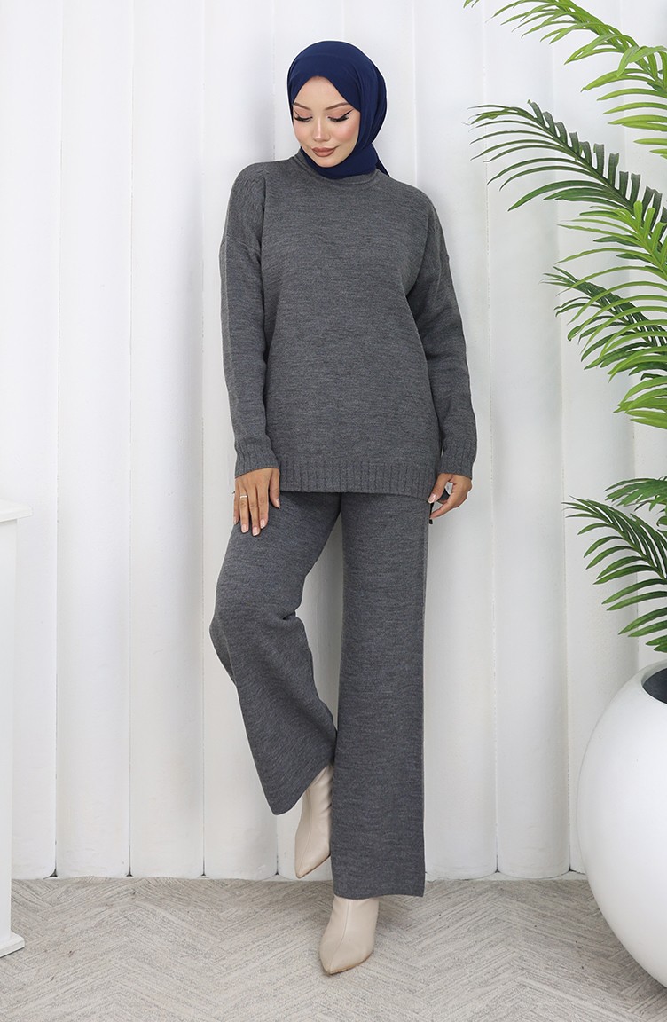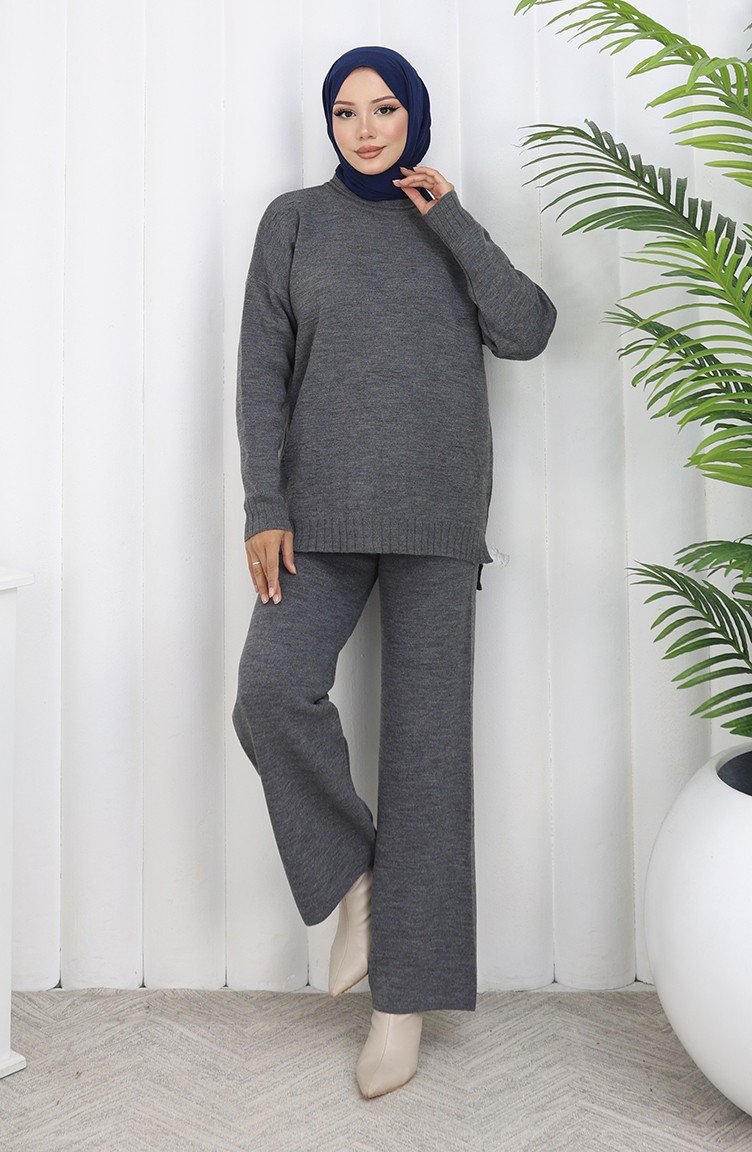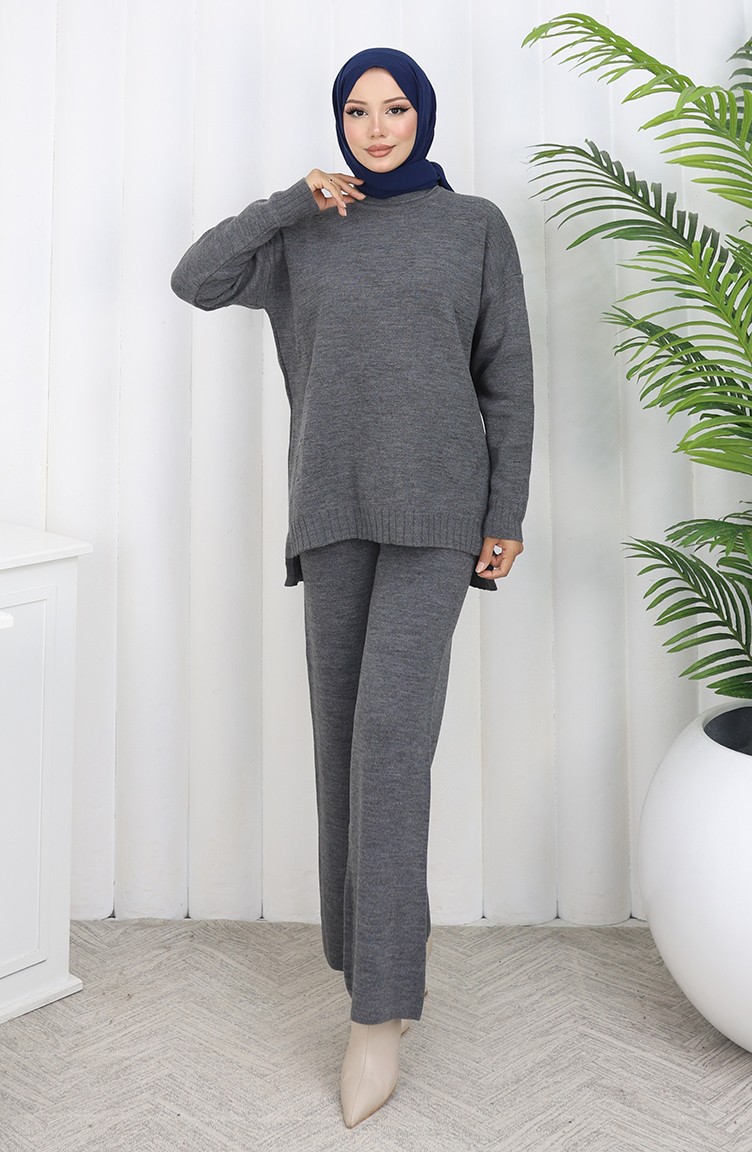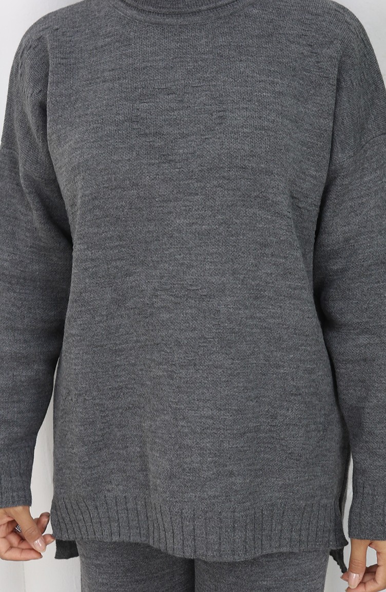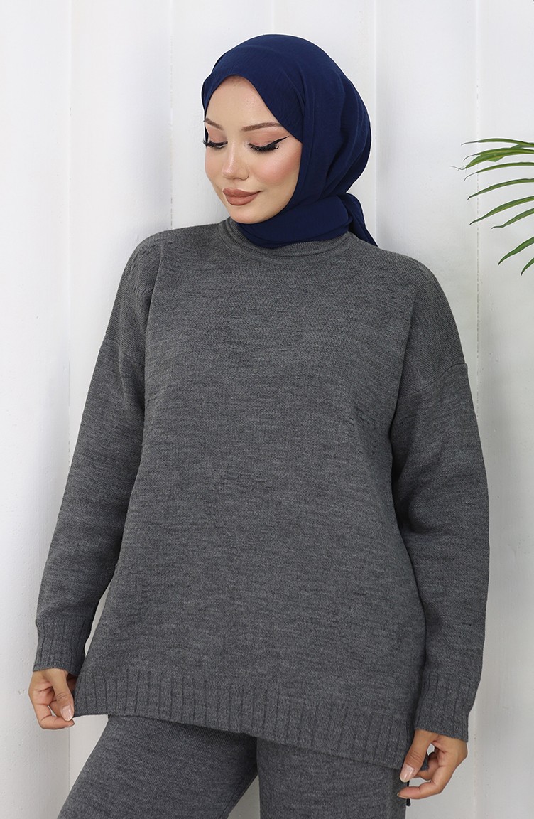 Triko Kalp Desenli Kazak Pantolon İkili Takım 0016-07 Antrasit
