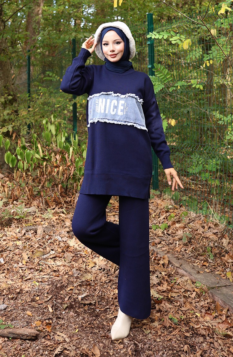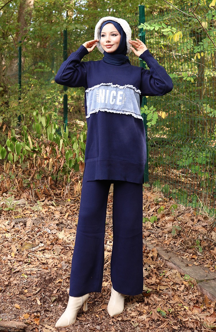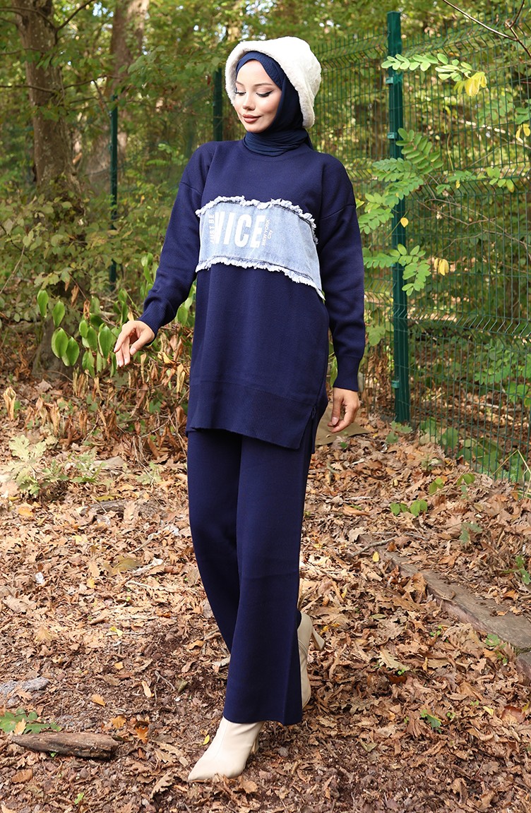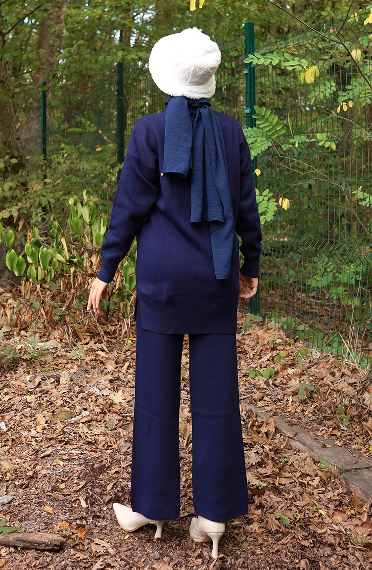 Triko Kot Garnili Tunik Pantolon İkili Takım 1094-05 Lacivert