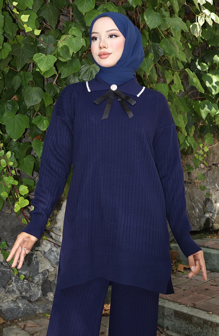 Triko Kurdale Detaylı Tunik Pantolon İkili Takım 1064-06 Lacivert