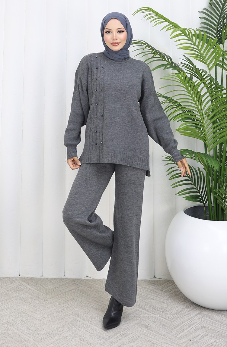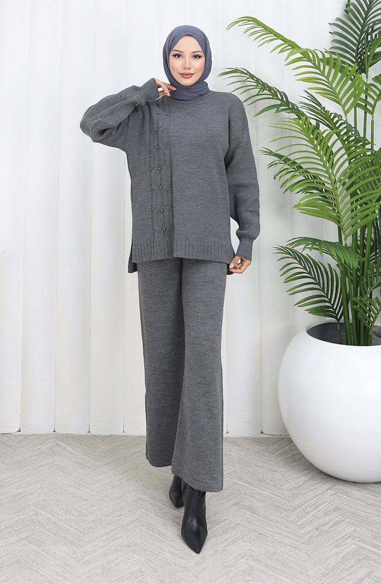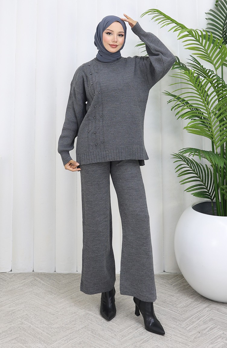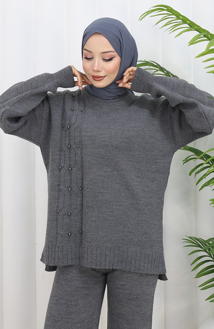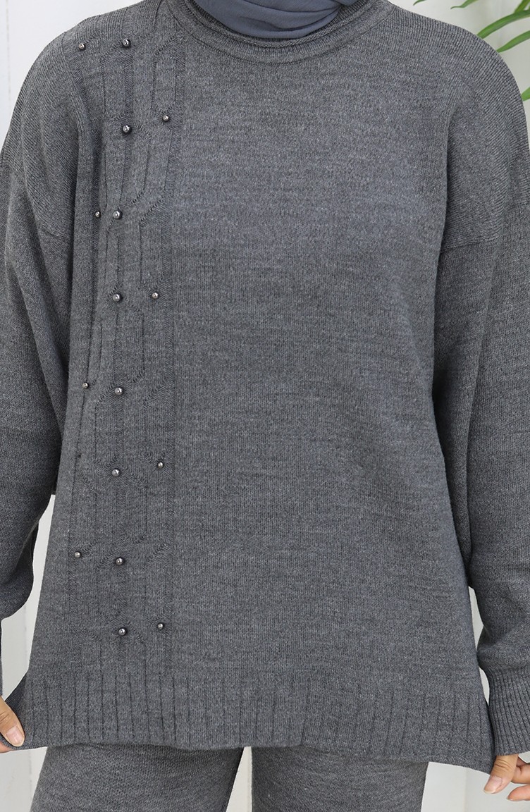 Triko Taş Detaylı Kazak Pantolon İkili Takım 0014-05 Antrasit