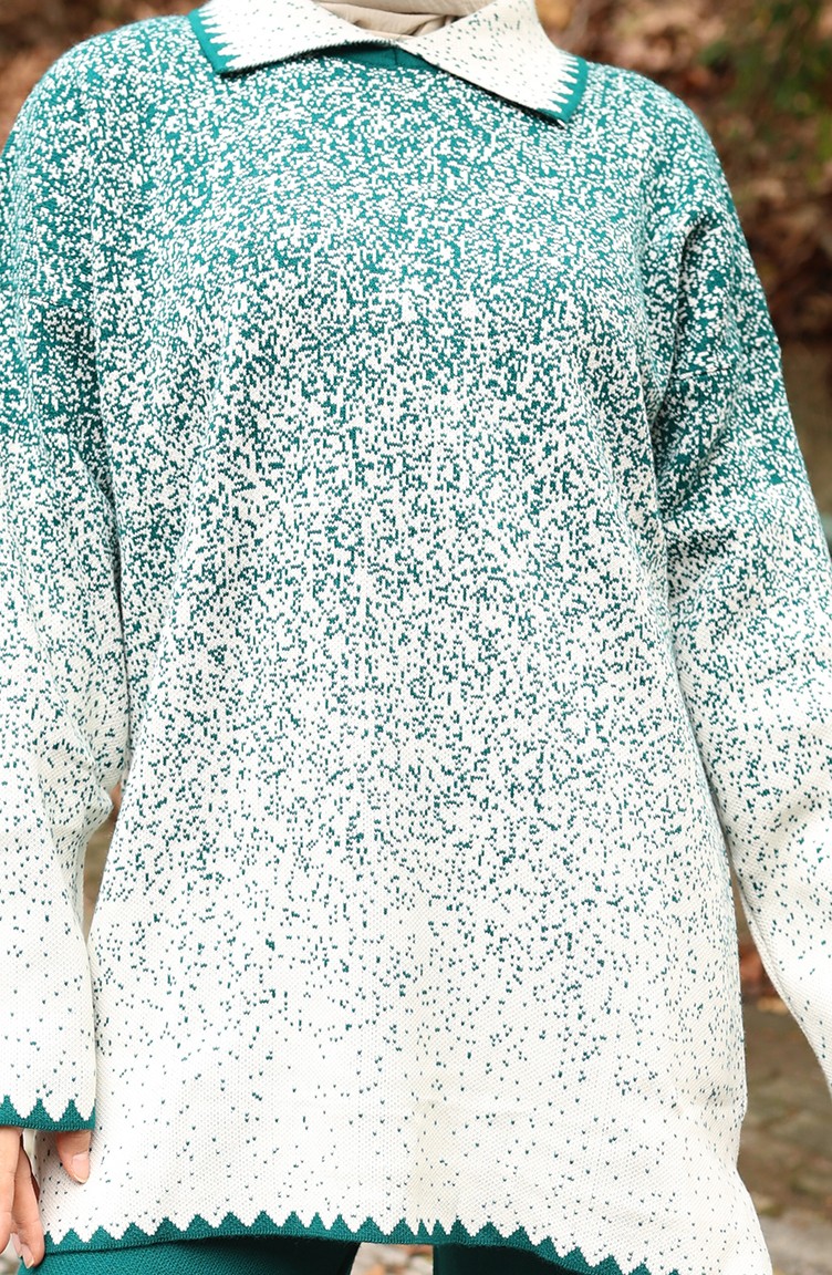 Triko Tunik Pantolon İkili Takım 1123-03 Zümrüt Yeşili