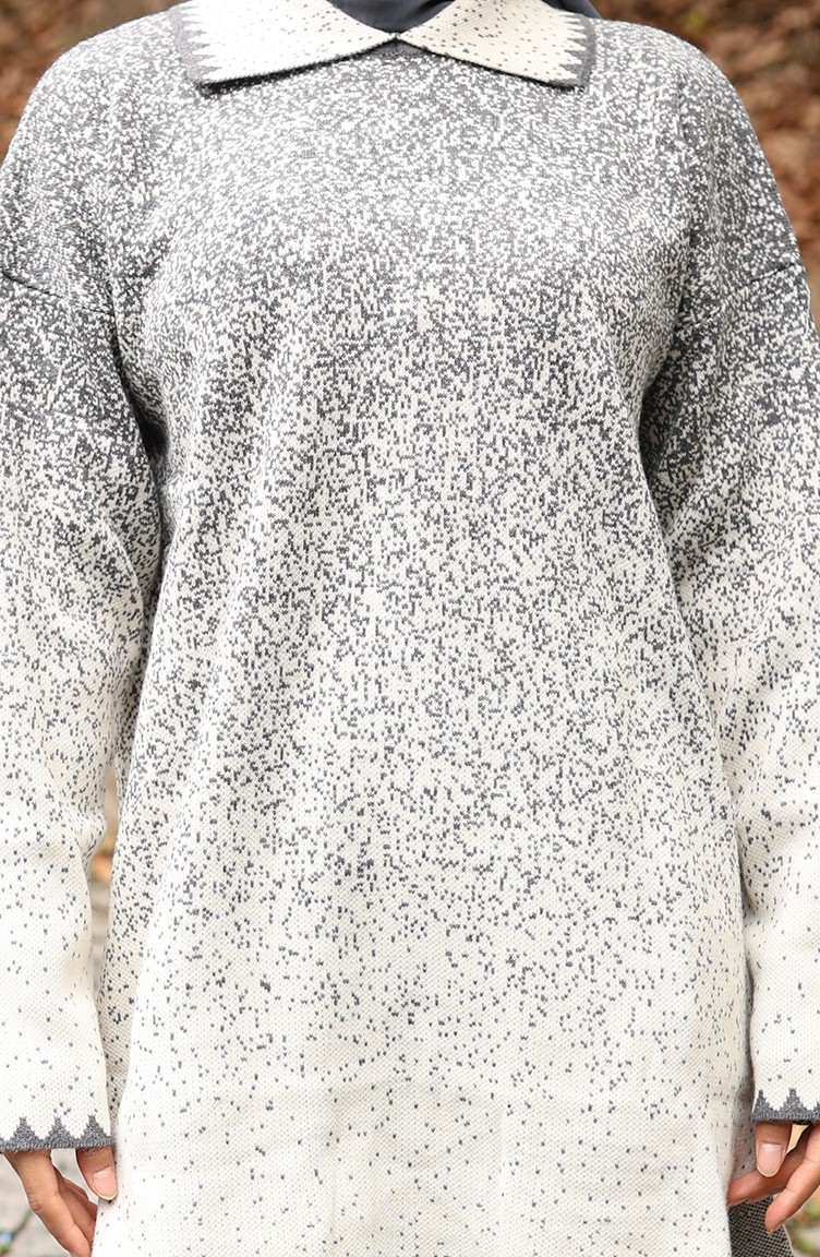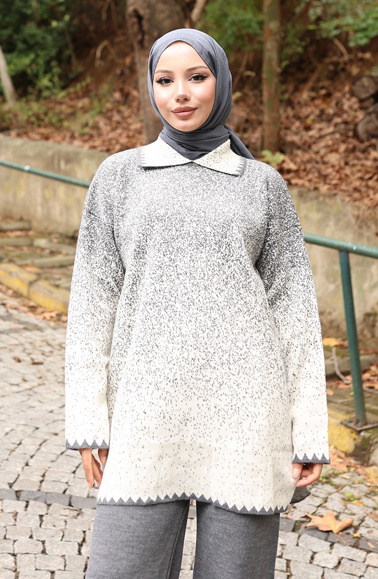 Gri renktedir. Akrilik kumaş. Sade. Tunik. Kışlık. 36-42 Beden aralığındadır.