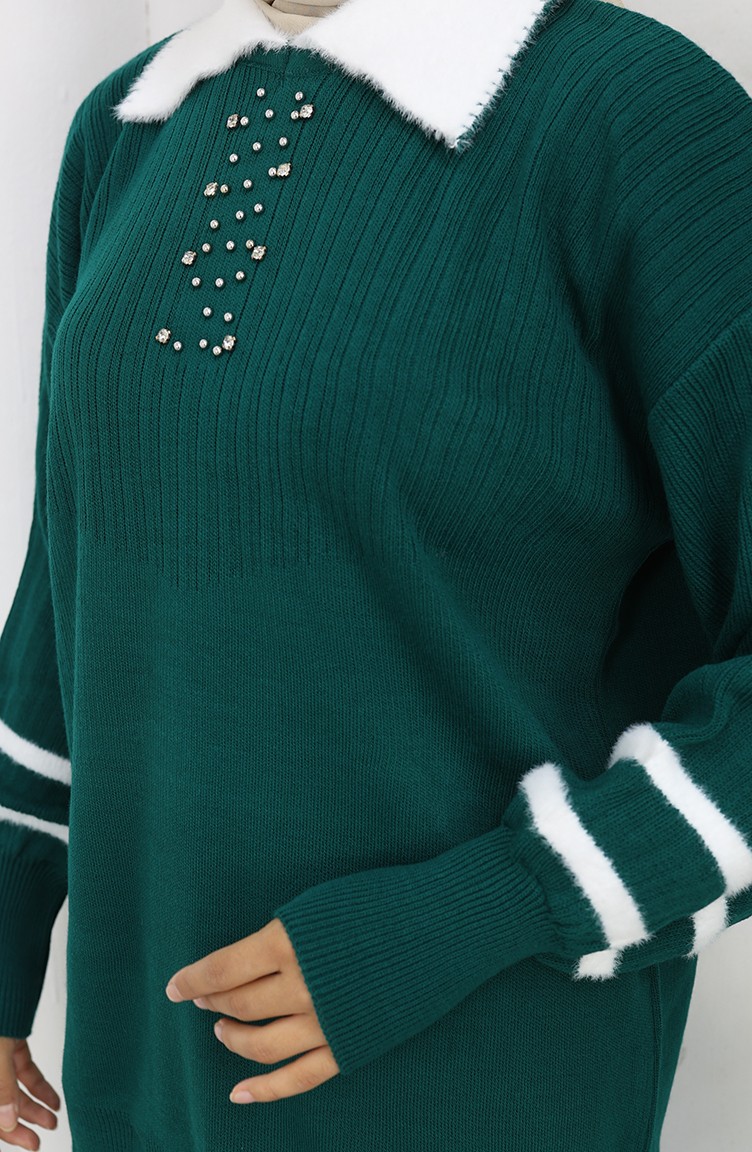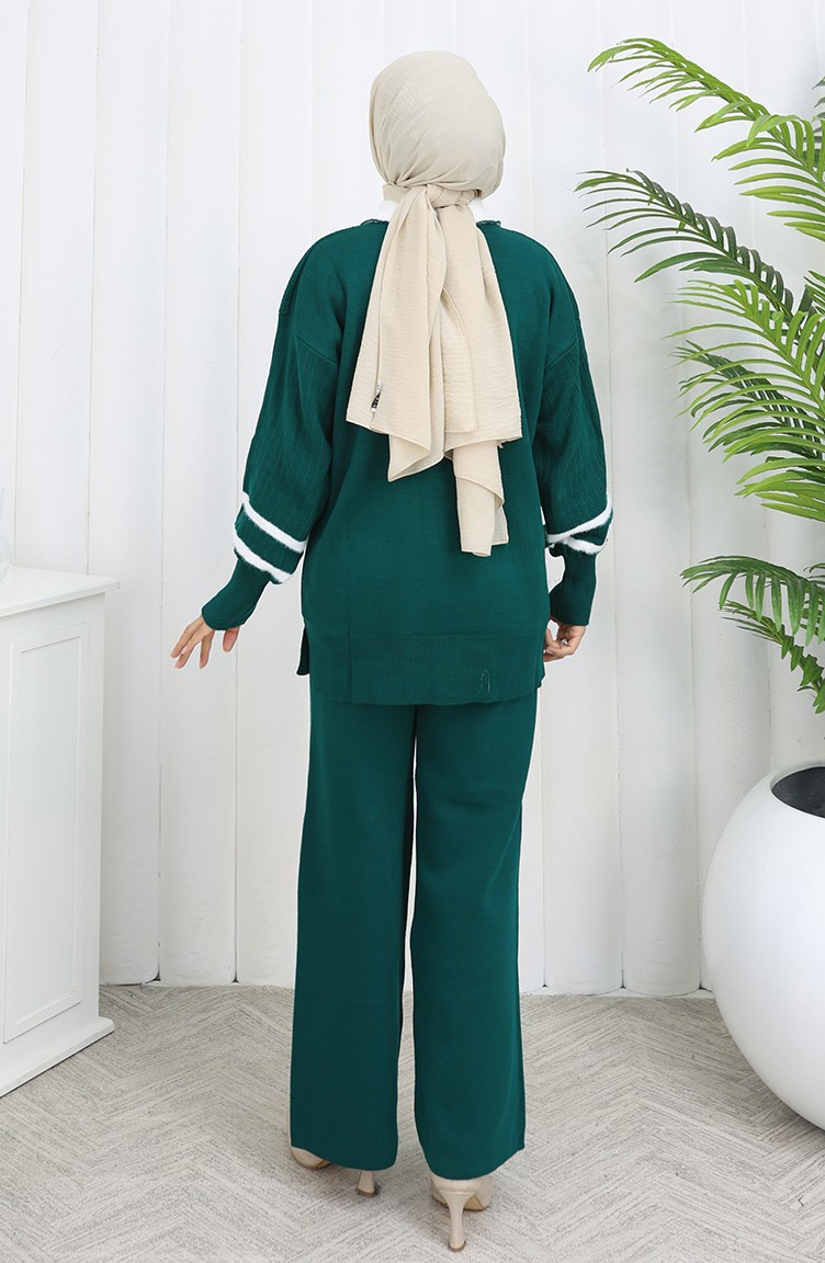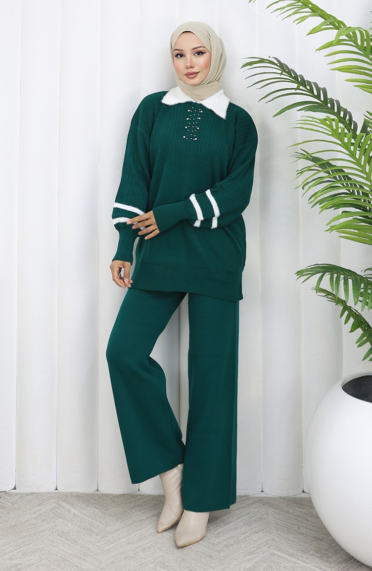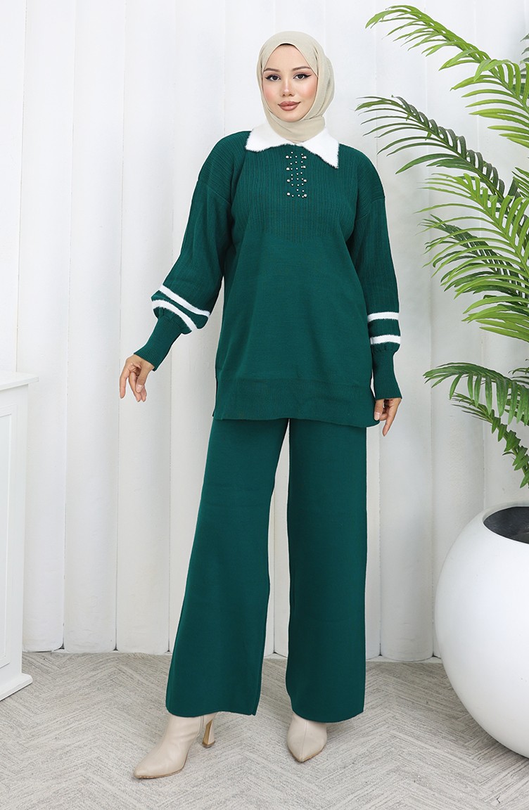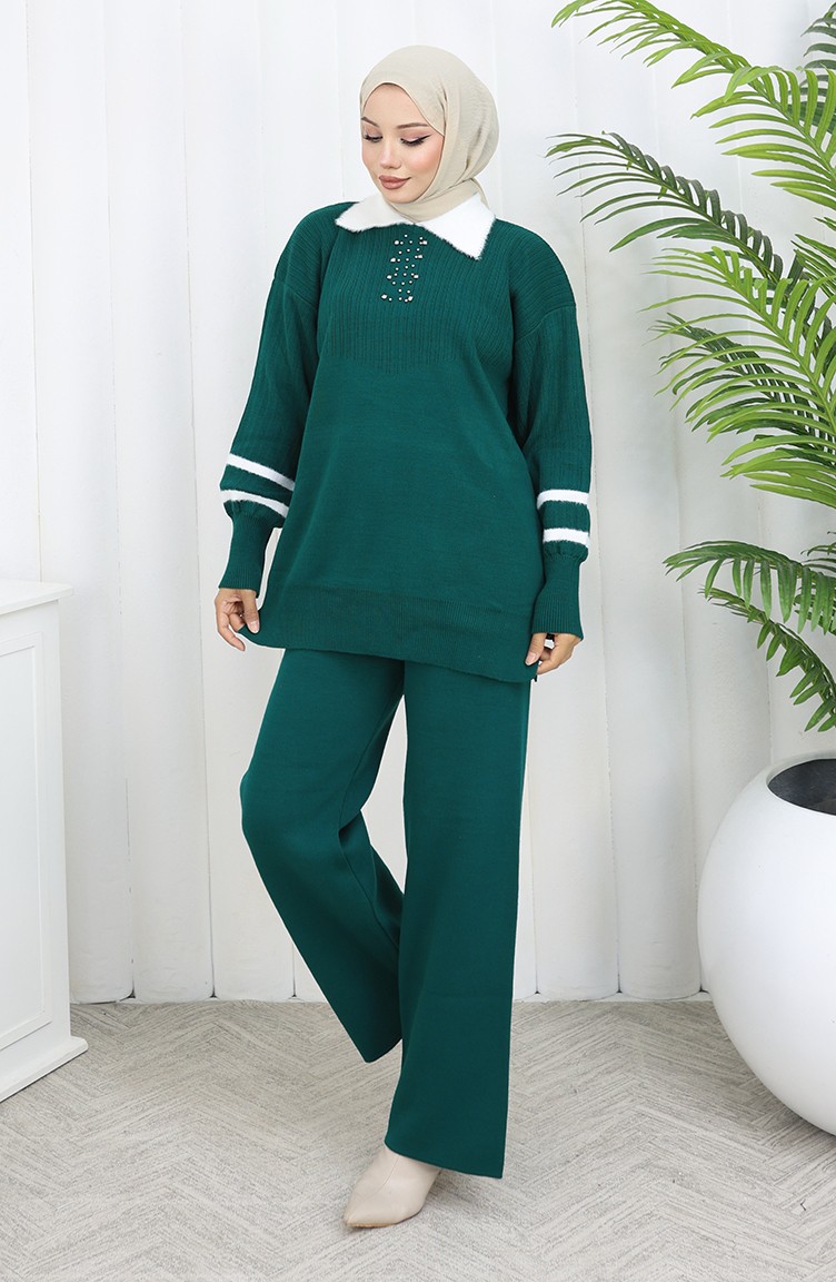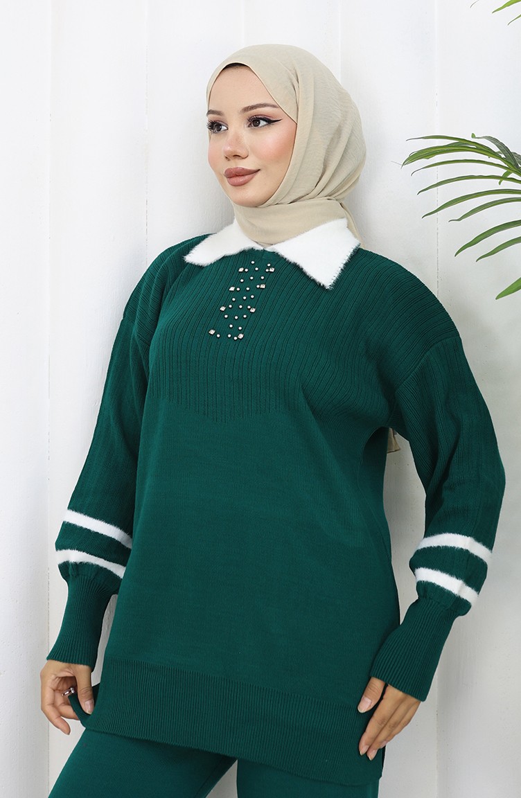 Triko Yaka Detaylı Tunik Pantolon İkili Takım 1002-03 Petrol