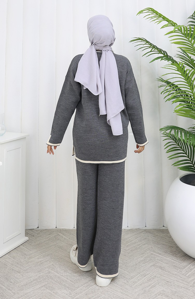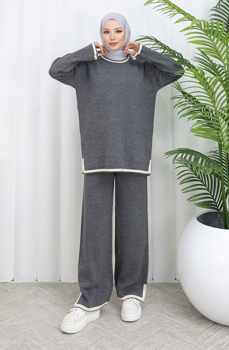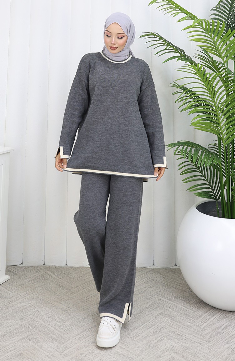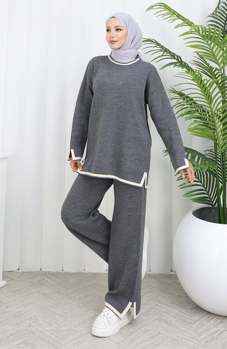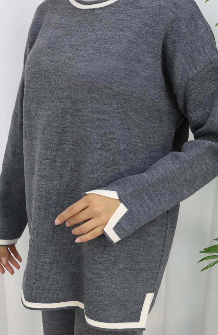 Triko Yırtmaç Detaylı Kazak Pantolon İkili Takım 0011-02 Antrasit