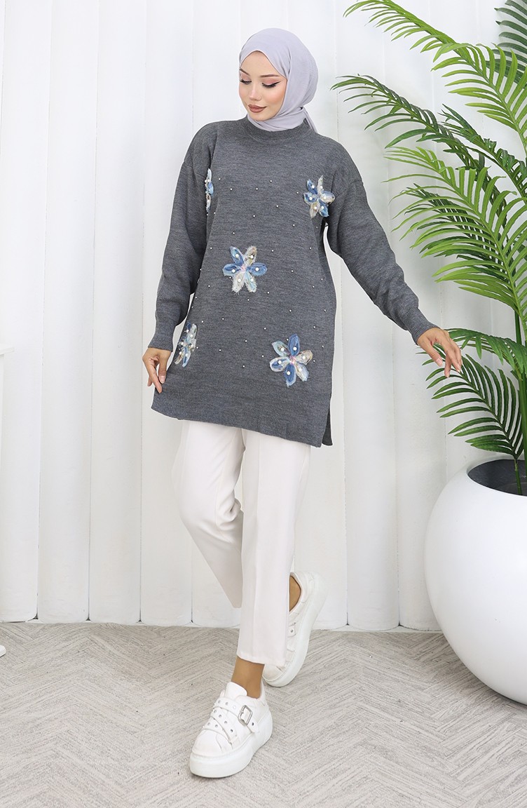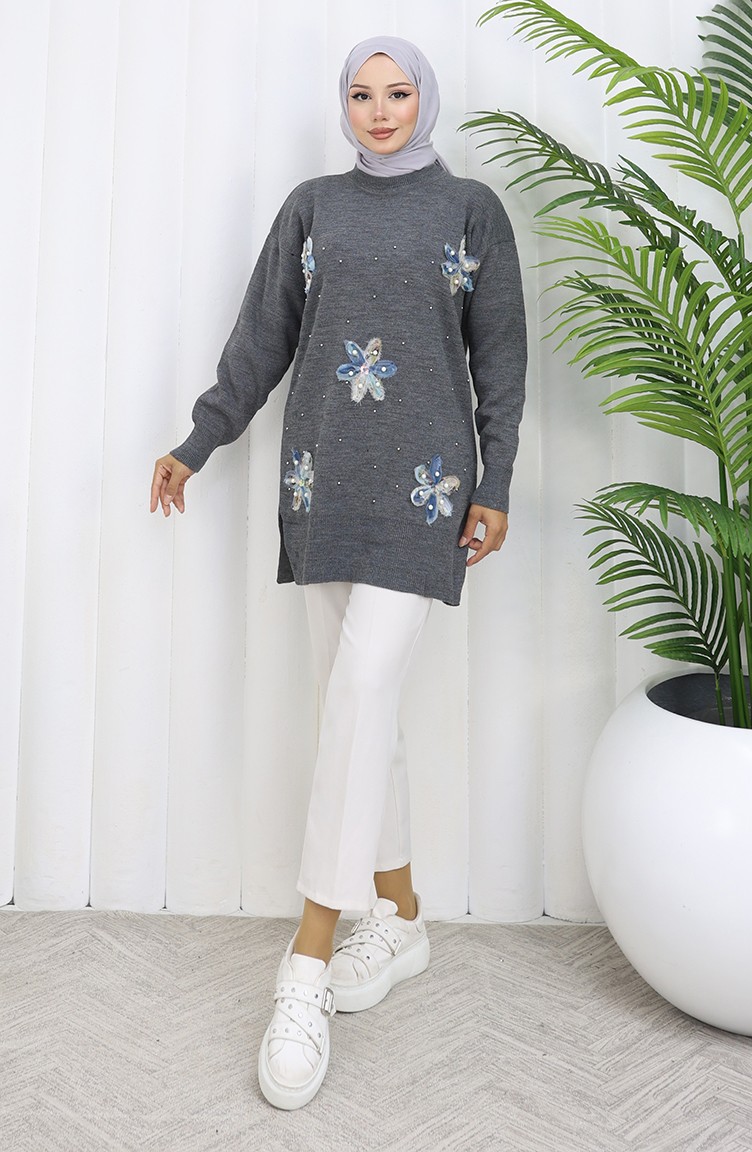 Gri renktedir. Akrilik kumaş. Sade. Tunik. Kışlık. 36-42 Beden aralığındadır.
