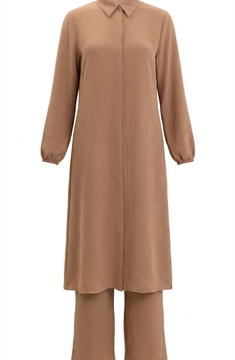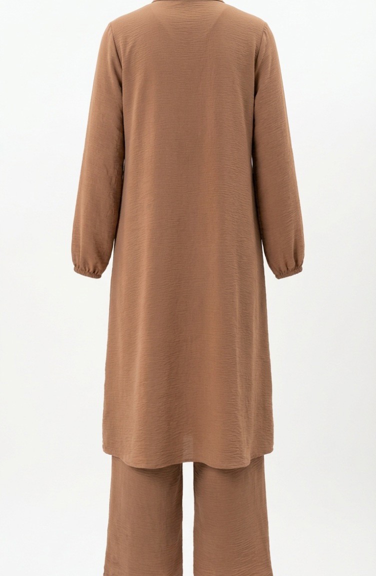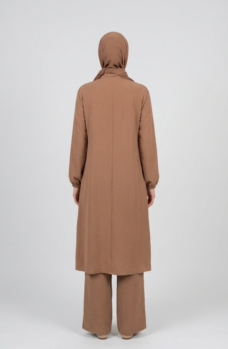 Aerobin Kumaş Tunik Pantolon İkili Takım 4142-02 Sütlü kahve