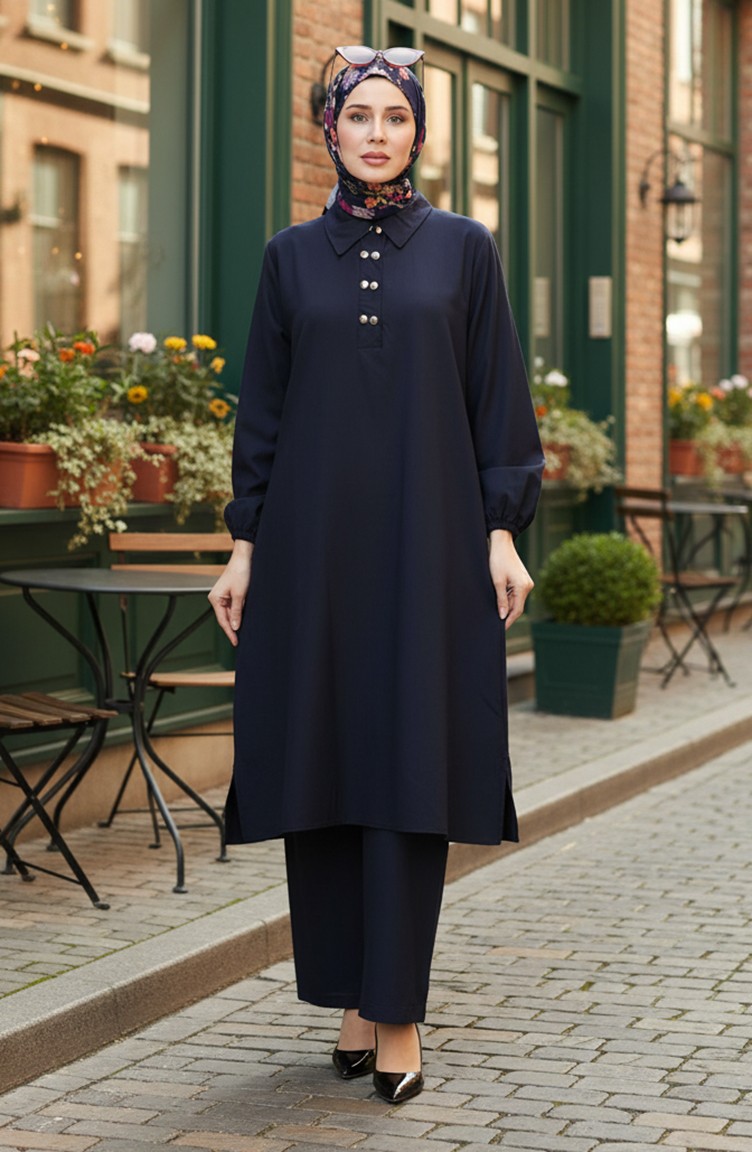 Gömlek Yaka Tunik Pantolon İkili Takım 0123-05 Lacivert