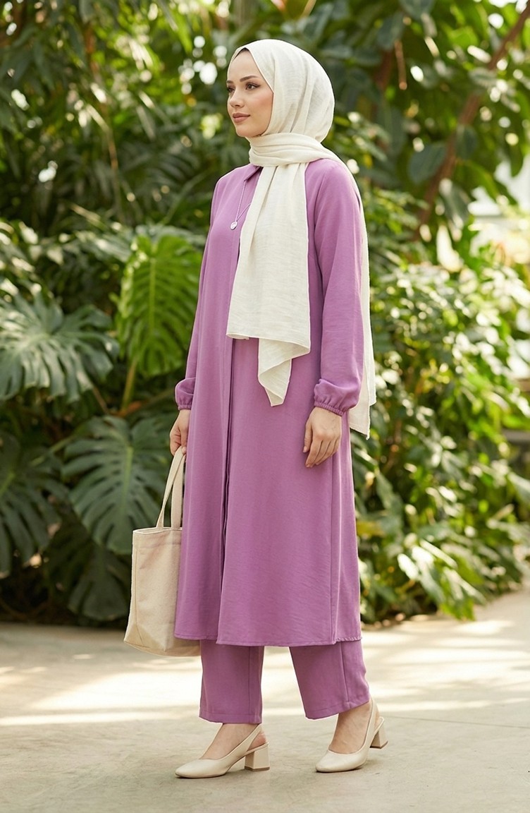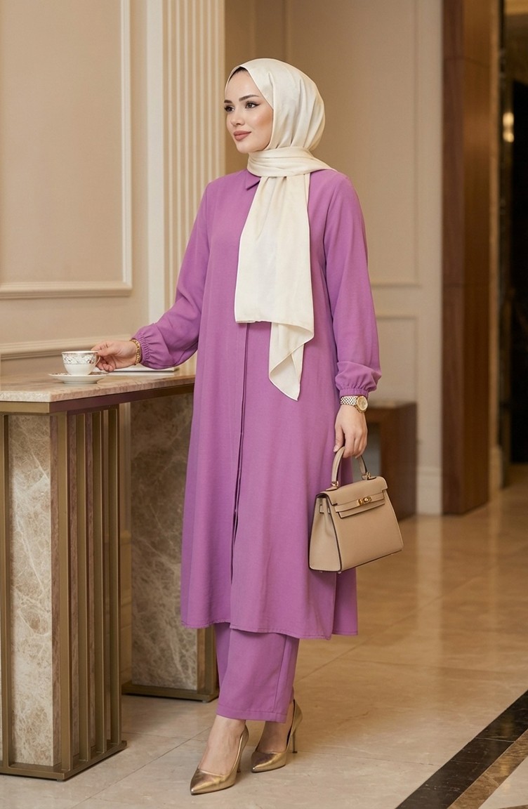 Viskon Belmando Kumaş Tunik Pantolon İkili Takım 0340-10 Gül Kurusu