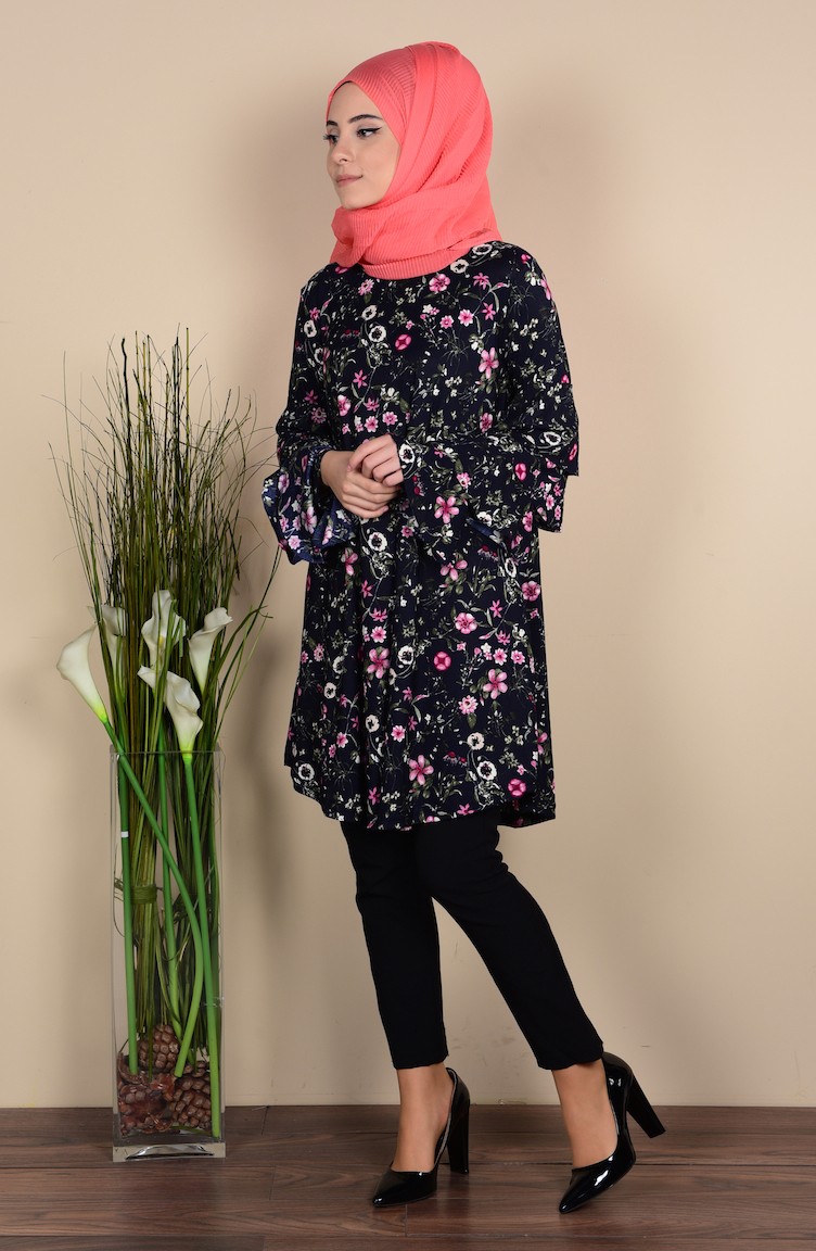 Çiçekli Tunik 0771D-01 Lacivert Lila