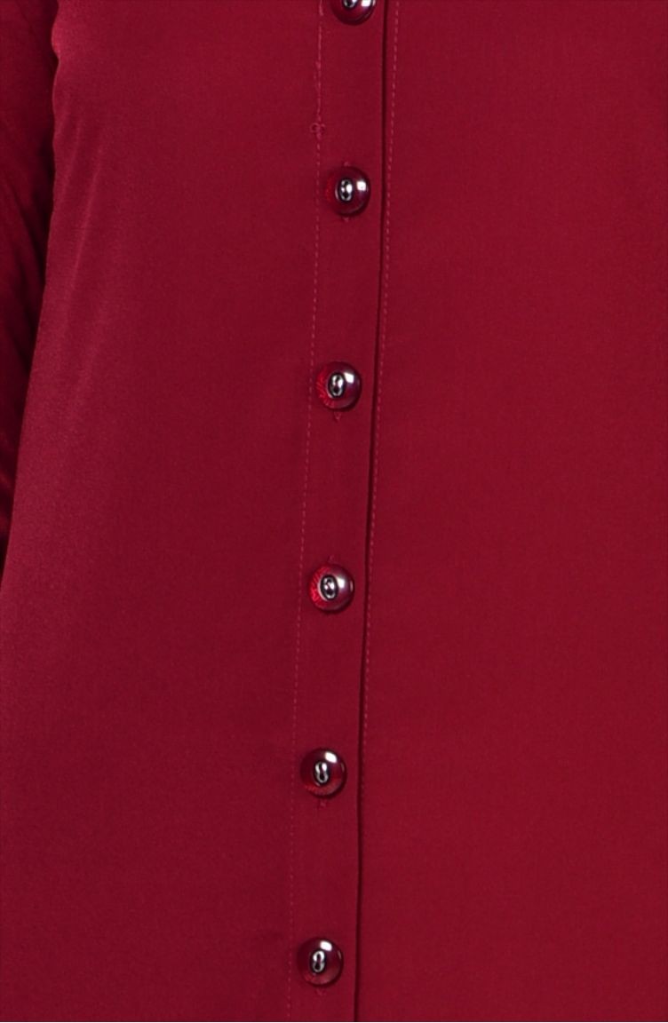 Krep Düğmeli Uzun Tunik 0684-06 Bordo