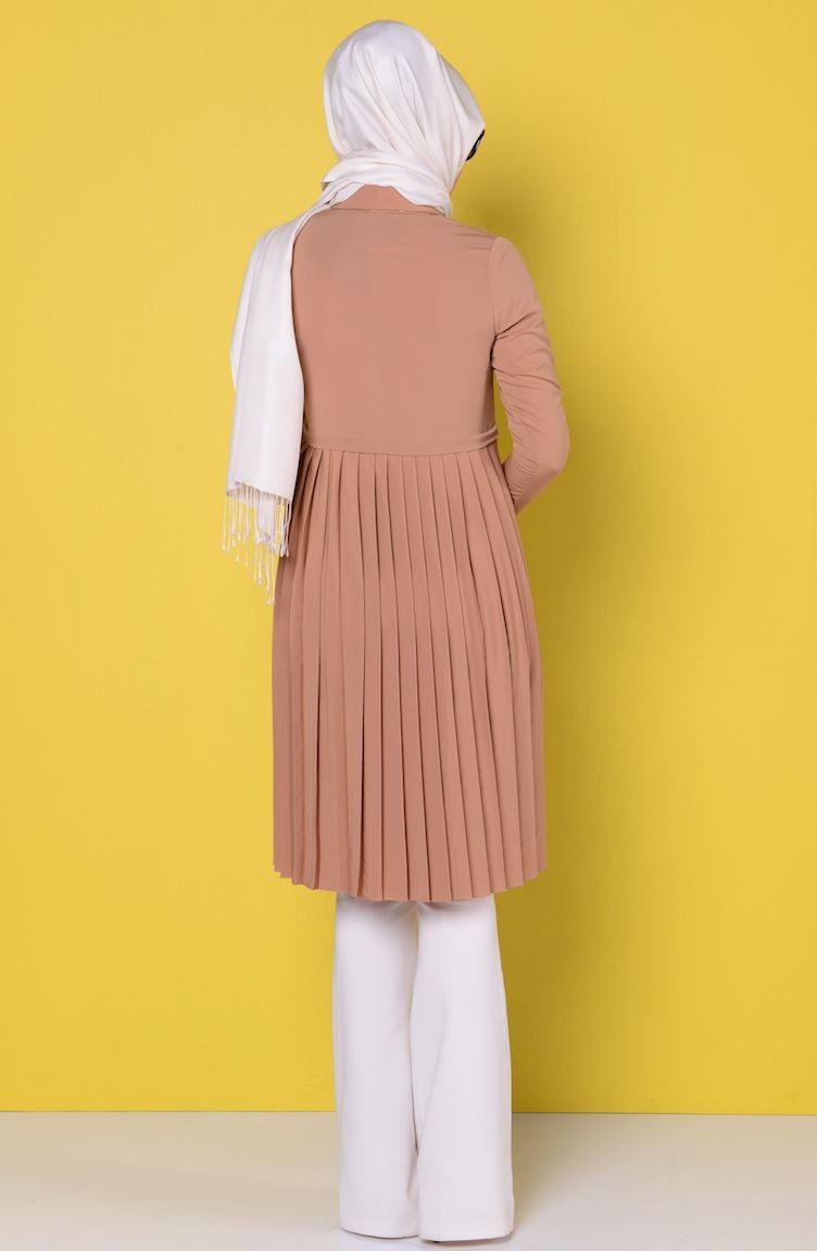 Bisküvi rengidir. Krep kumaş. Sade. Astarsız. Uzun kolludur. Sivri yaka detayı ile kullanışlı modeldir. 4 Mevsim tercih edebilirsiniz. Standart.
