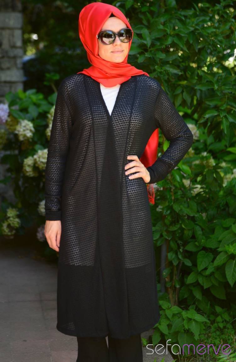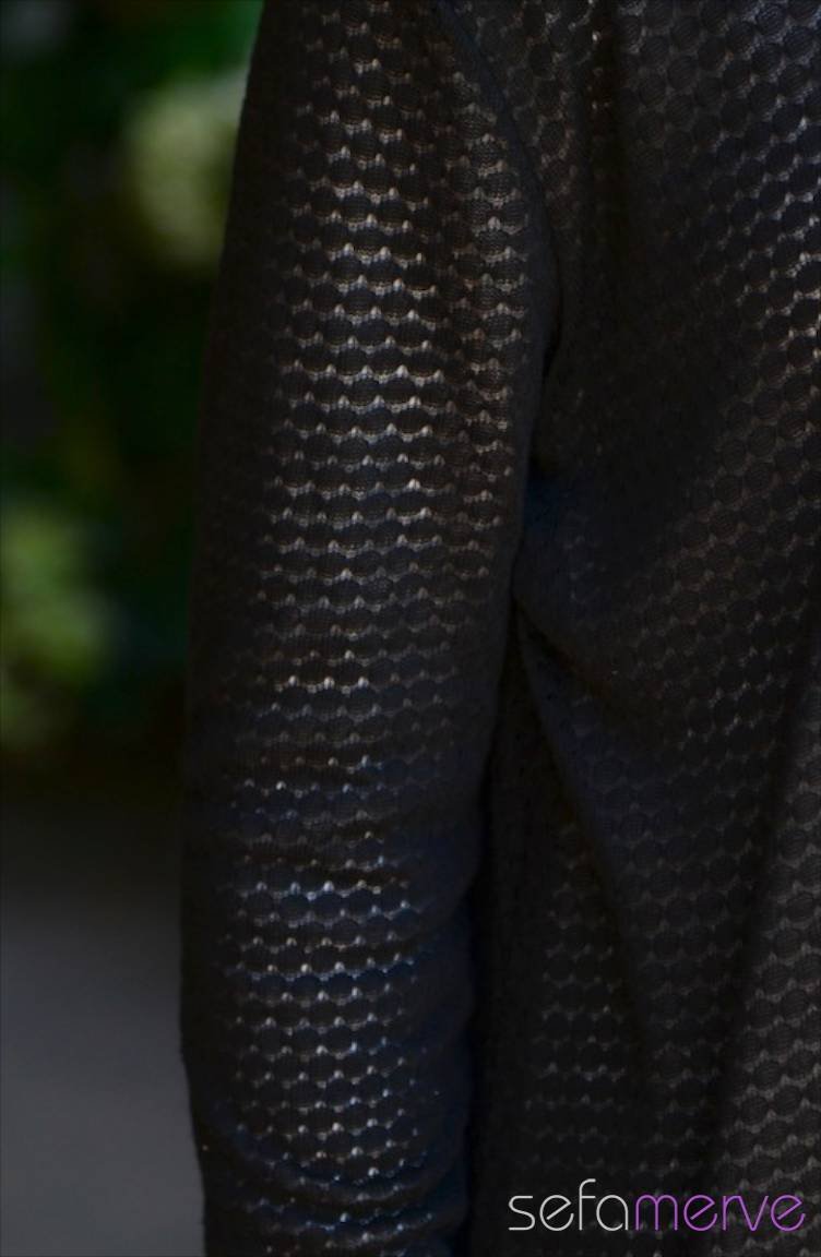 Siyah renktedir. Triko. Sade. Astarsız. Standart.