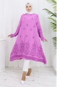 Nar Çiçeği renktedir. Krep kumaş. Desenli kumaş. Sıfır yaka detayı ile rahat kullanıma sahiptir. 4 Mevsim tercih edebilirsiniz. Büyük beden seçeneği mevcuttur.