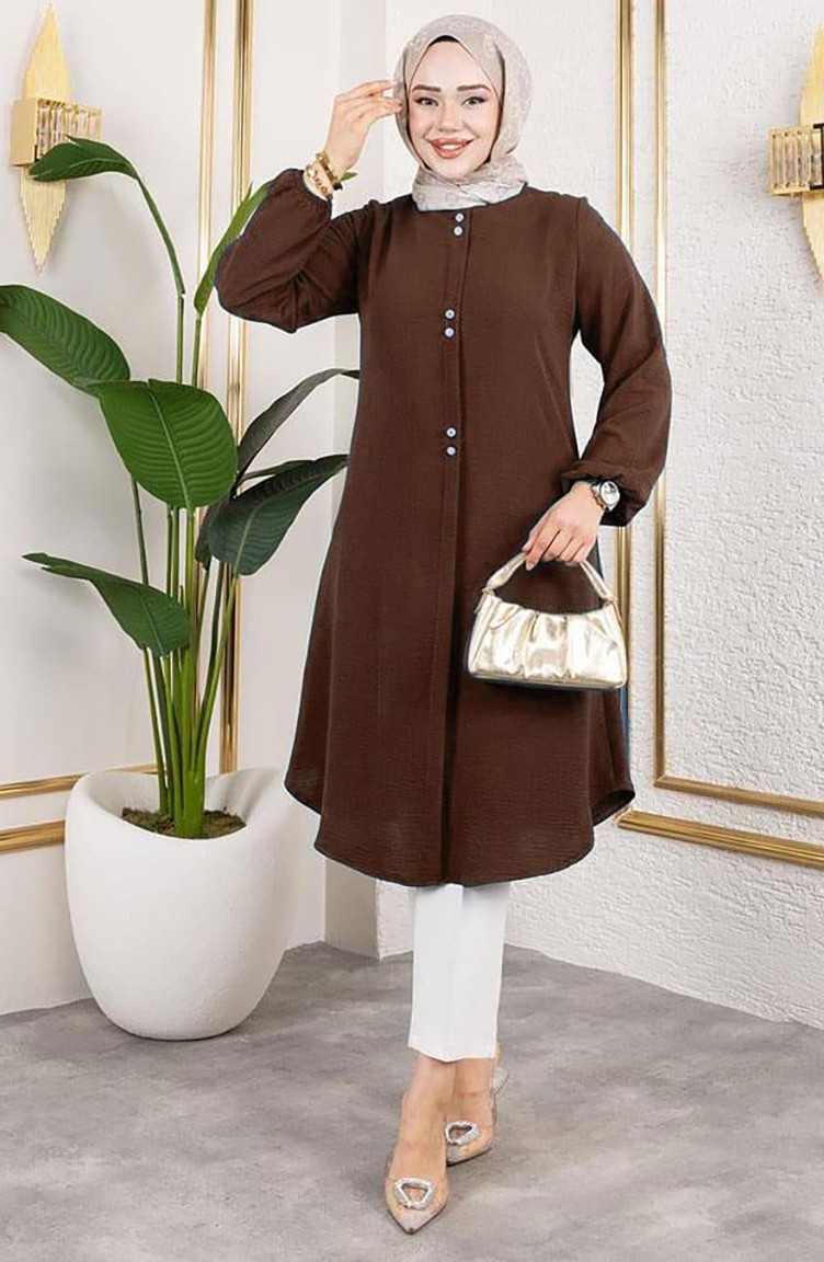 Düğme Detaylı Aerobin Tunik 0175-09 Kahverengi