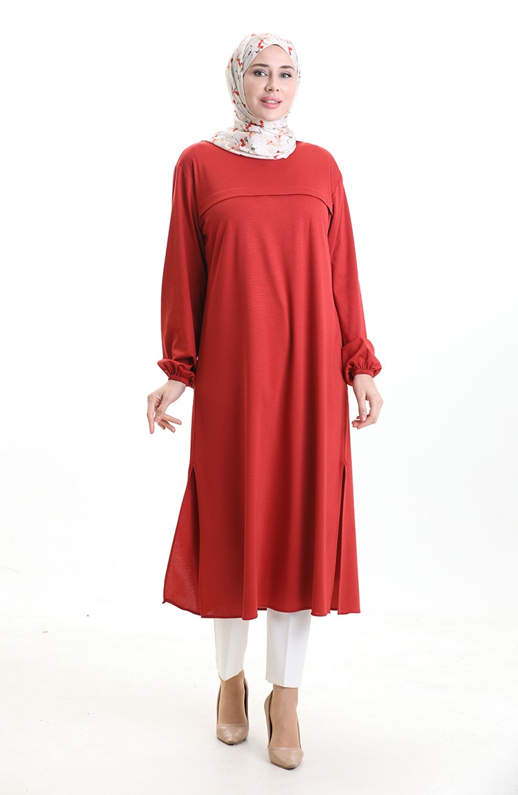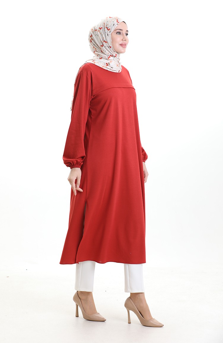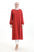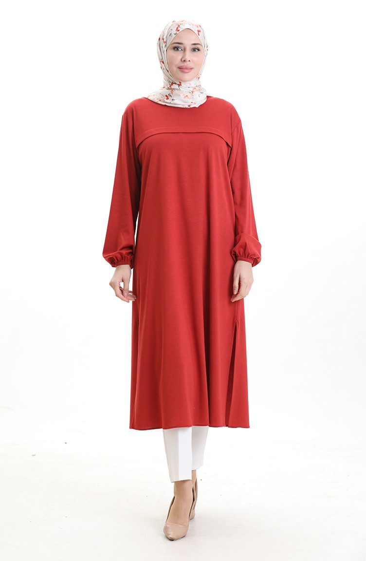 Yandan Yırtmaçlı Uzun Tunik 4104-09 Kiremit