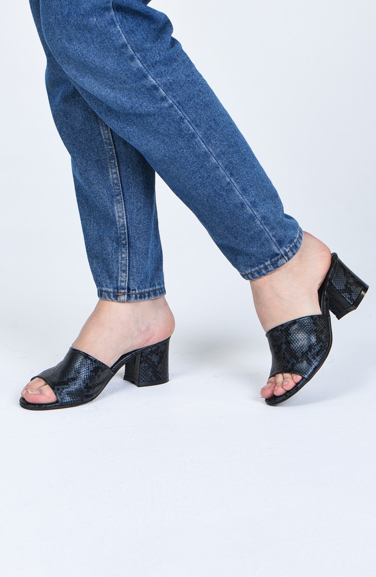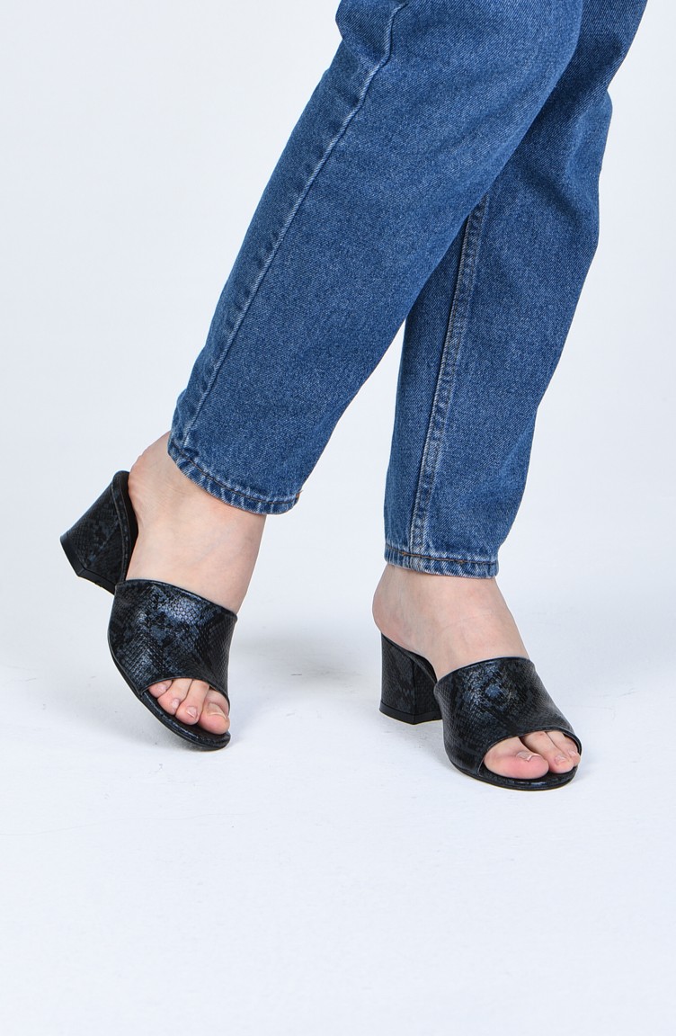 Bayan Topuklu Terlik 9103-12 Lacivert Yılan