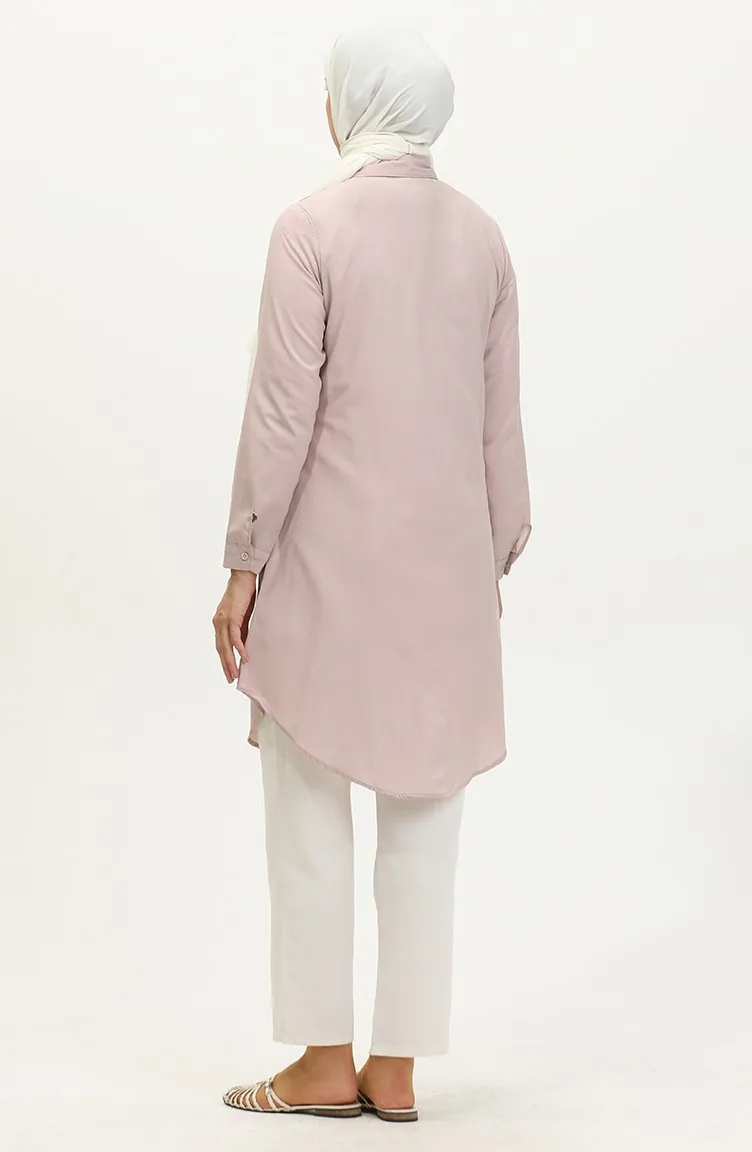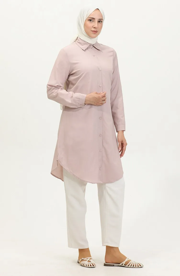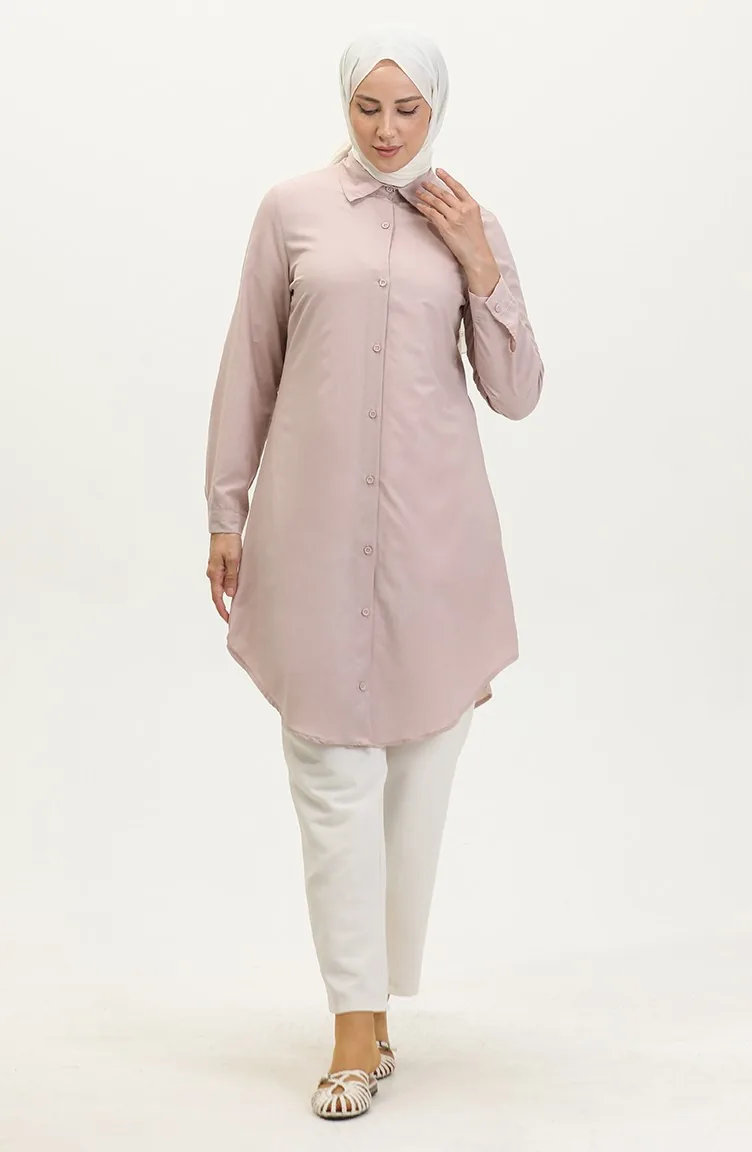 Pudra renktedir. Koton kumaştır. Sade. Düğmeli. Uzun kolludur. Gömlek yaka detayı ile kullanışlı modeldir. Yazlık. Büyük beden seçeneği mevcuttur.