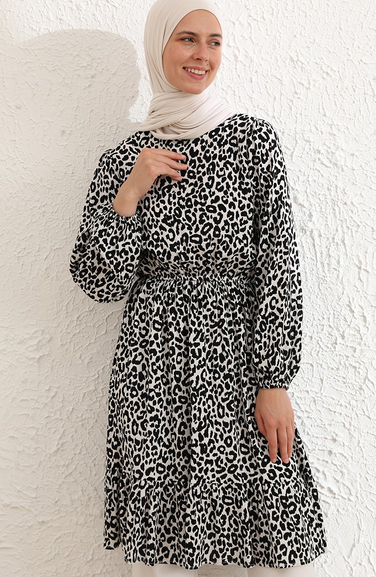 Eteği Fırfırlı Tunik 4340-01 Beyaz Siyah