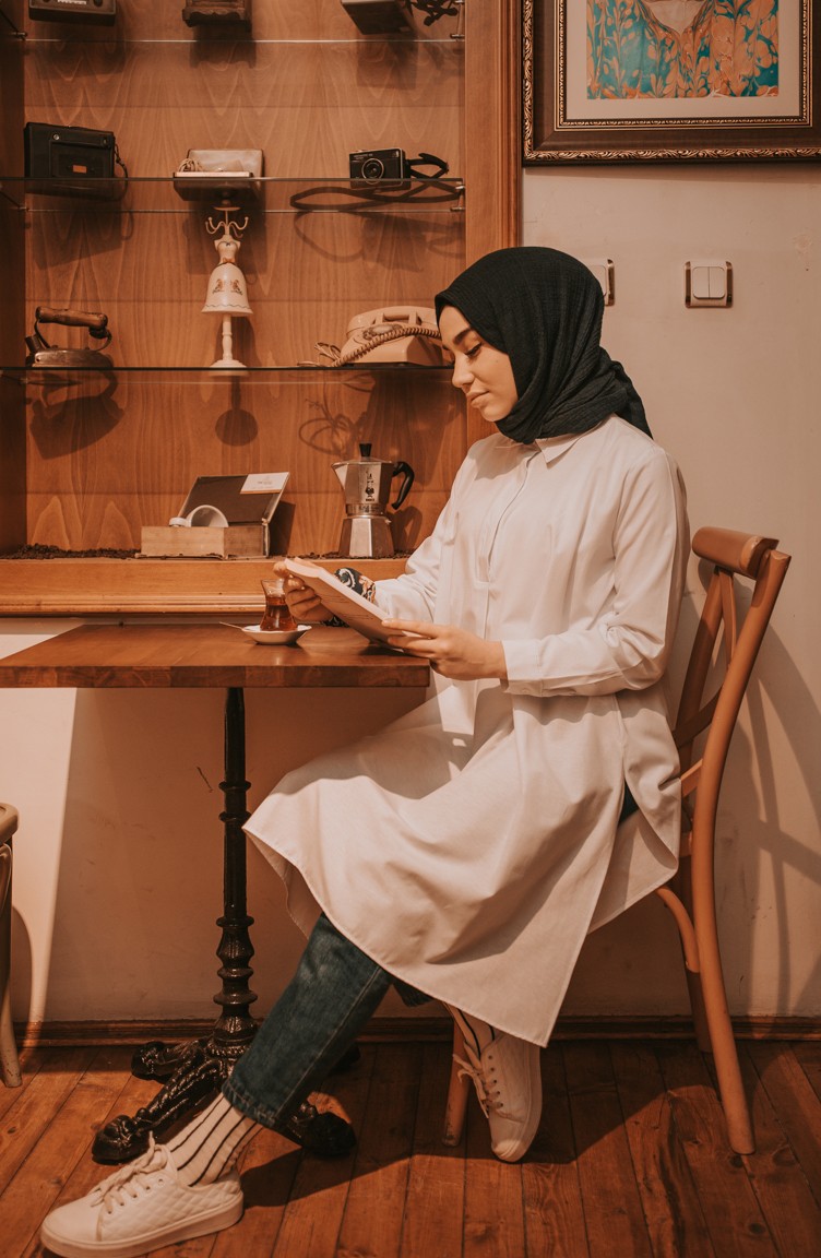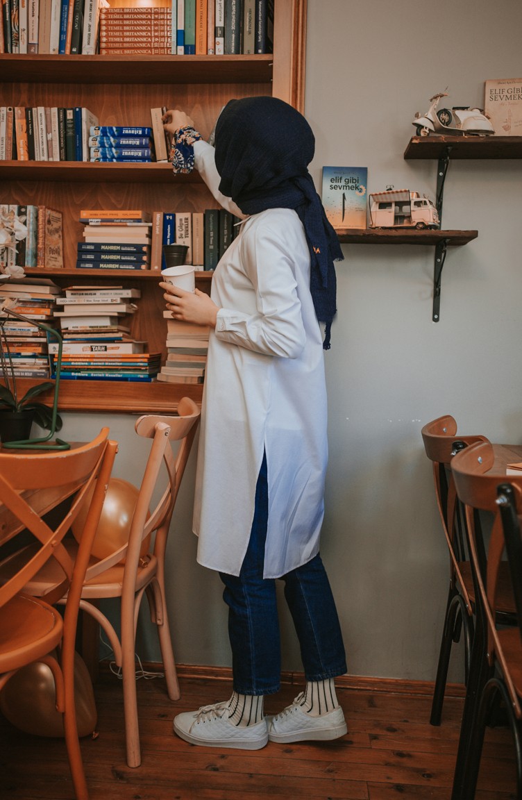 Gizli Düğmeli Yırtmaçlı Tunik 6478-08 Beyaz