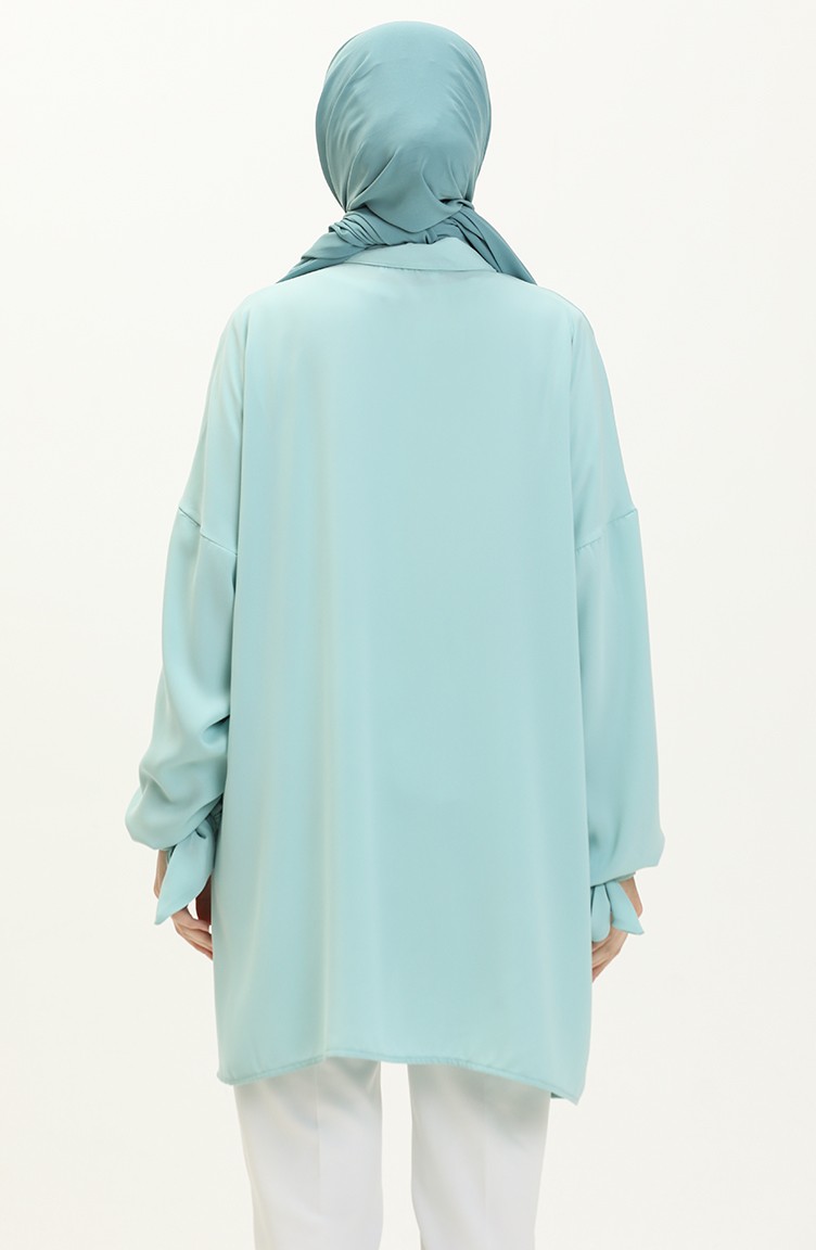 Yakası Taşlı Gömlek Tunik 4412-03 Mint Yeşili