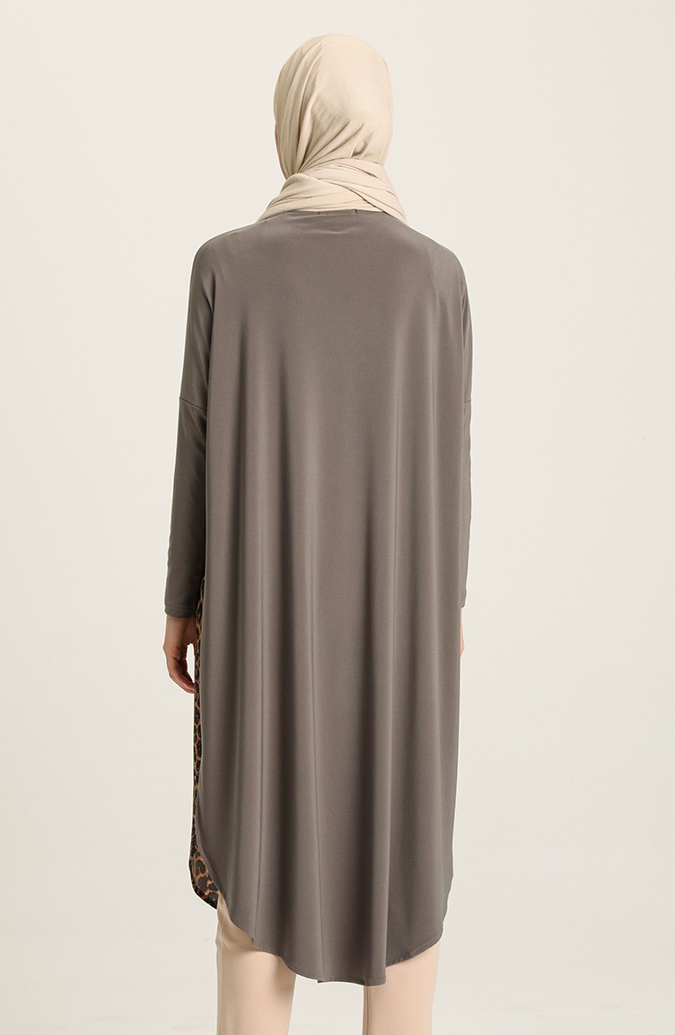 Yarım Leopar Desenli Tunik 5002-02 Vizon