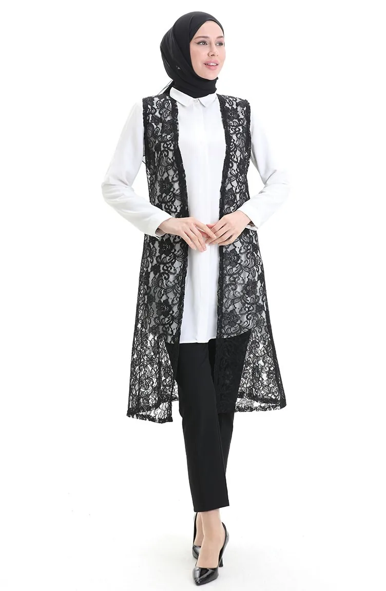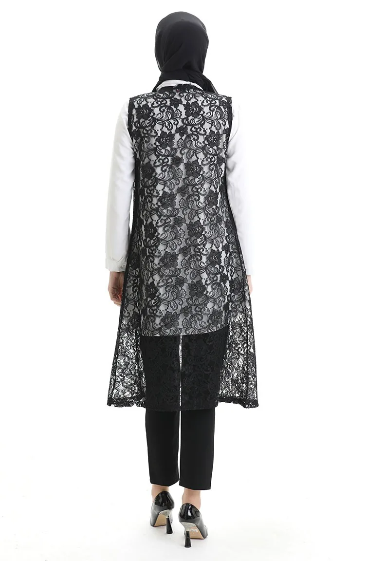 Dantelli Uzun Yelek 8742-01 Siyah