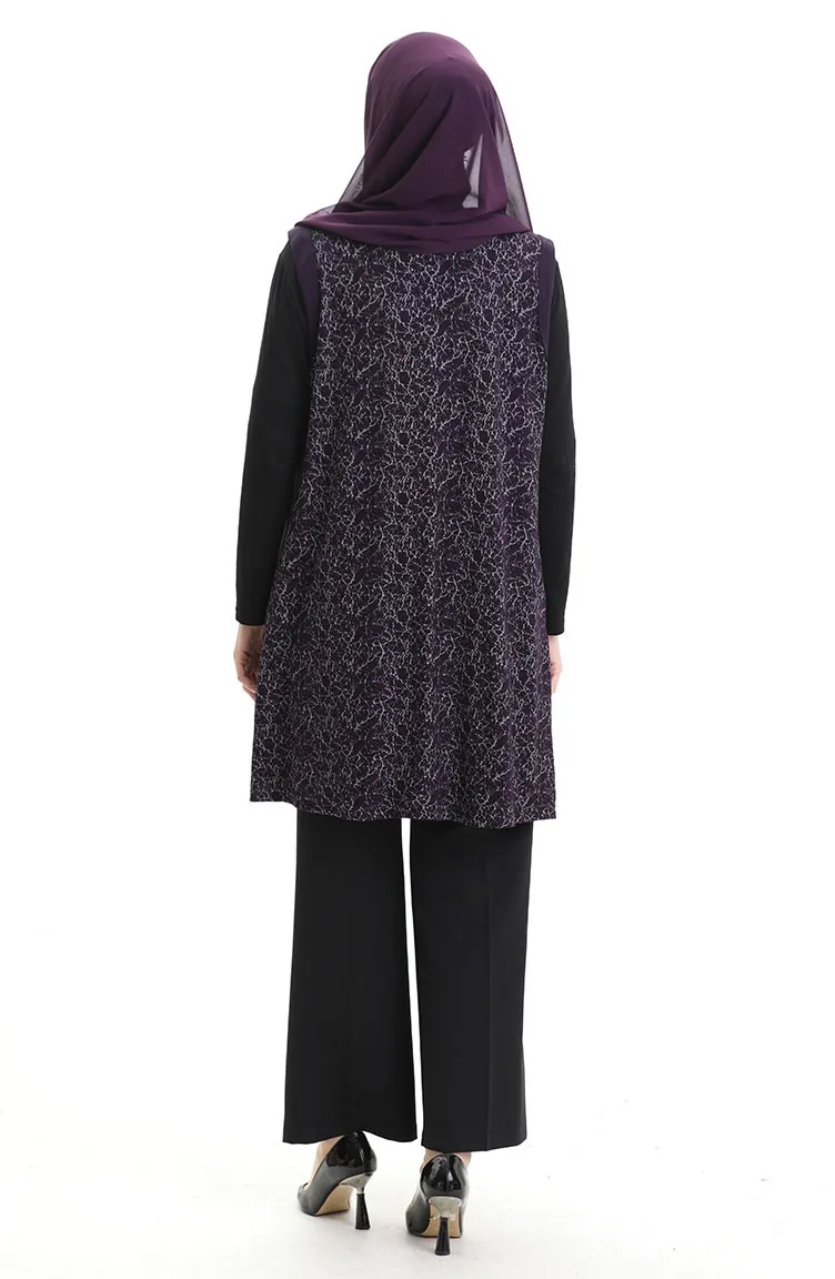 Jakarlı Düğmeli Yelek 994727B-04 Mürdüm