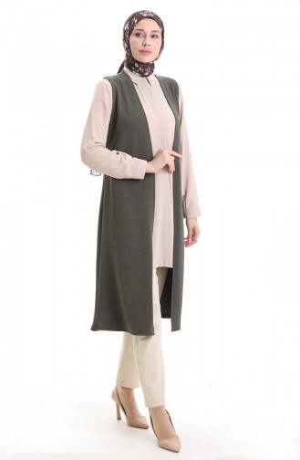 Mevsimlik Uzun Basic Yelek Büyük Beden Anne Yelek 8747-02 Haki