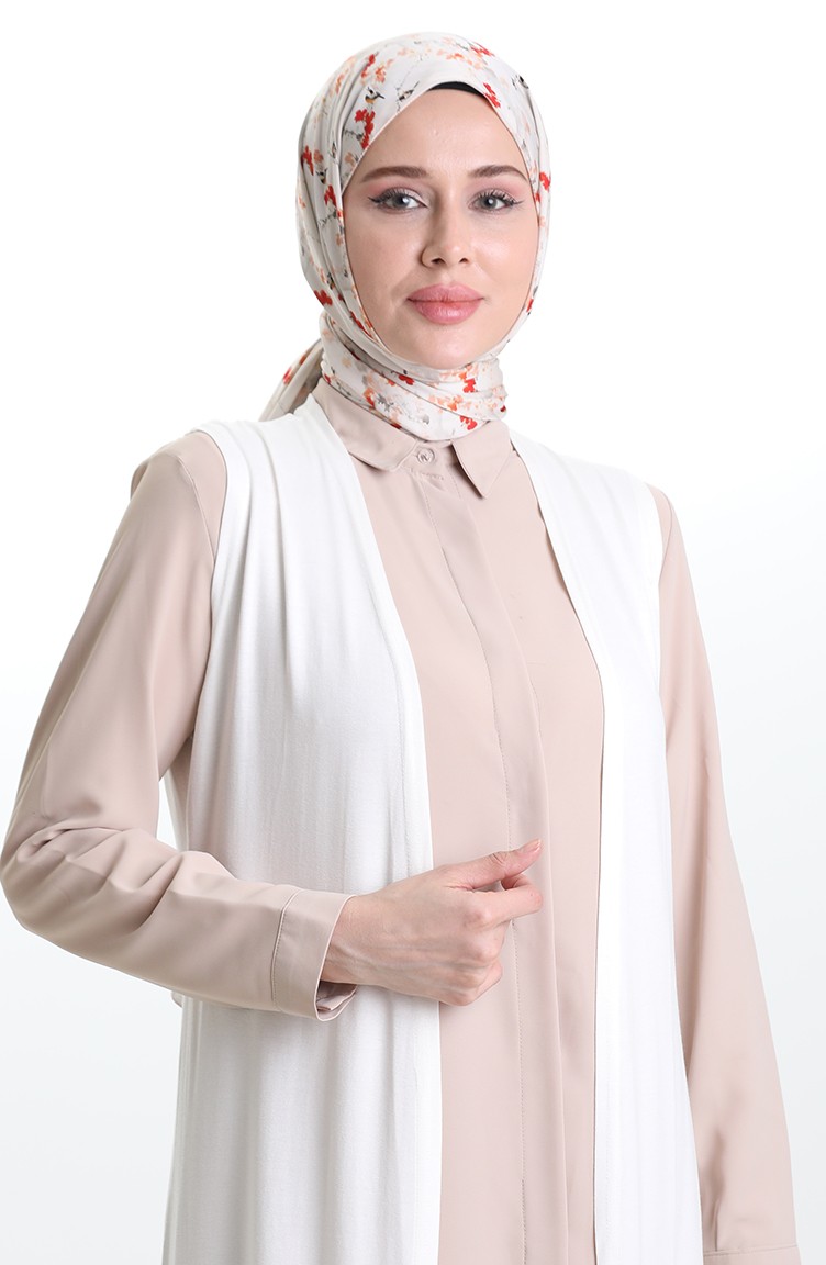 Mevsimlik Uzun Basic Yelek Büyük Beden Anne Yelek 8748-A04 Kırık Beyaz