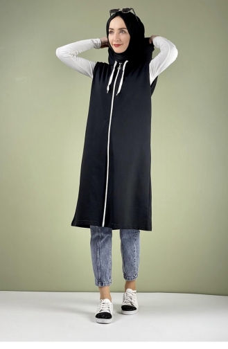 Spor Kapişonlu Yelek Siyah